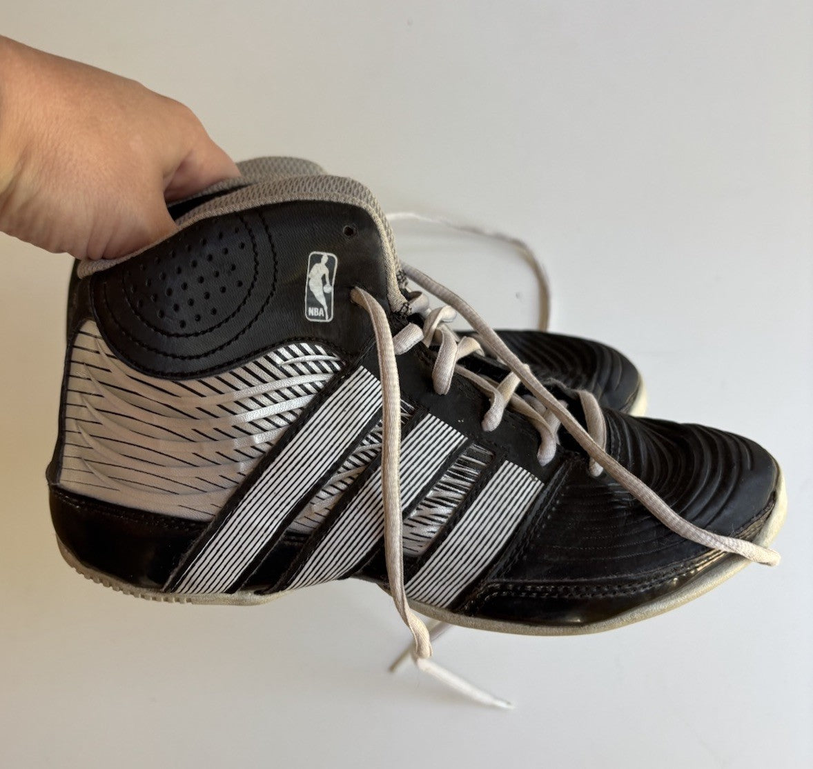 Adidas kids boys size US 3/EUR 35 black silver NBA basketball sneakers, VGUC