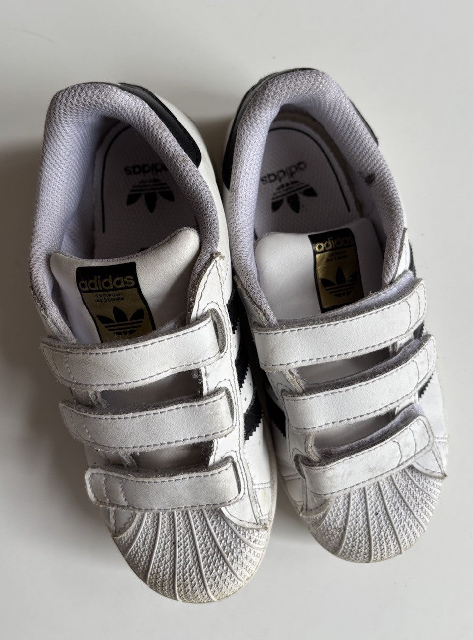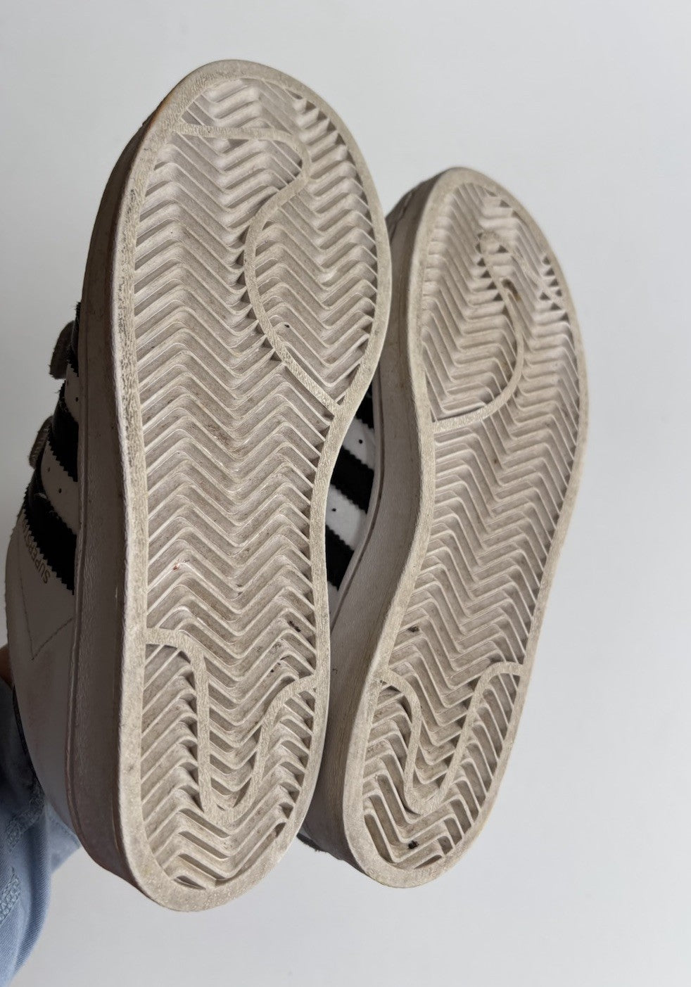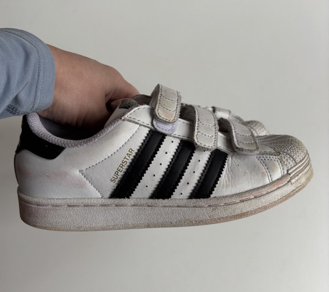 Adidas kids size US 2/EUR 33.5 white black Superstar sneakers shoes, VGUC