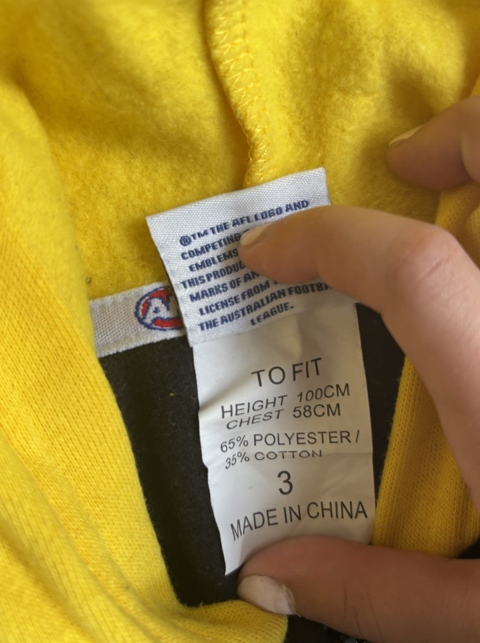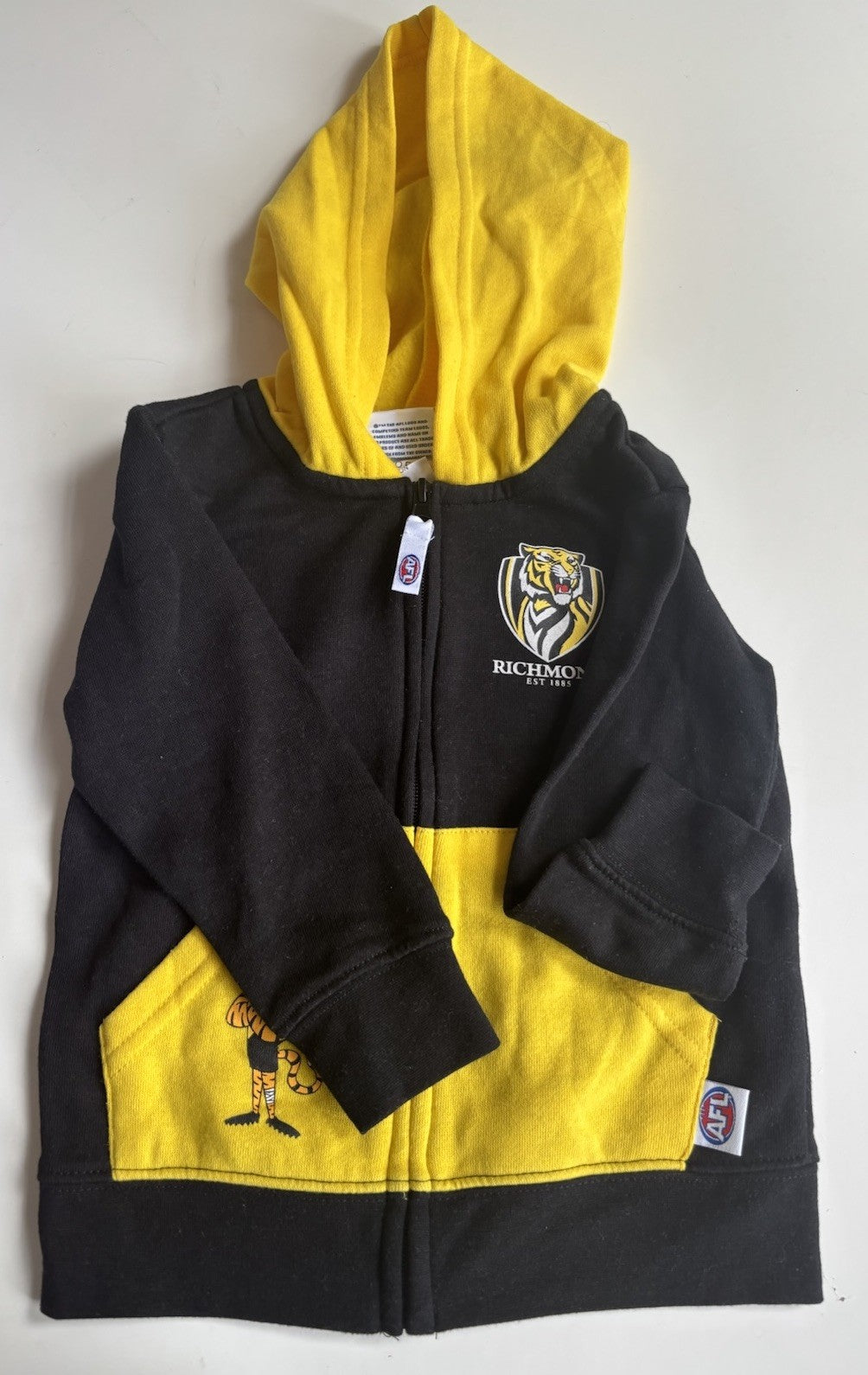 AFL Richmond kids toddler size 3 black yellow hooded jumper, VGUC