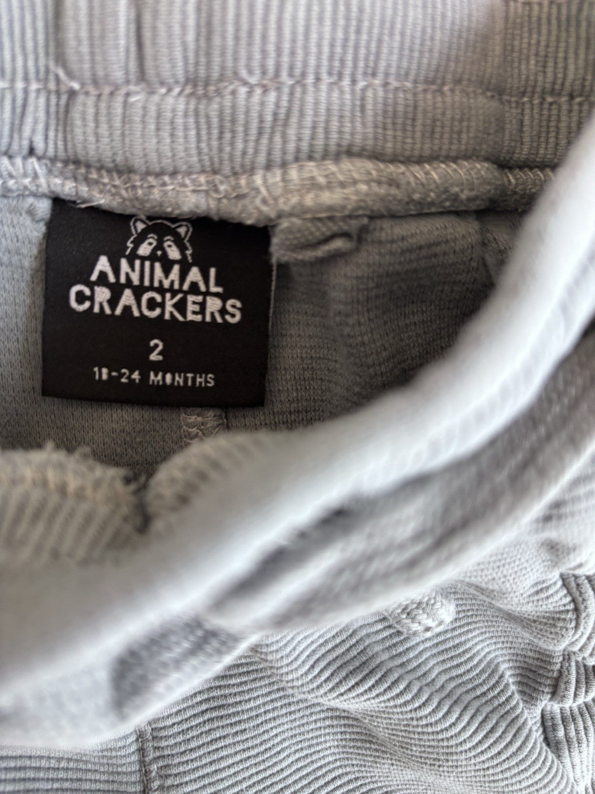 Animal Crackers baby boy size 18-24 months blue grey ribbed shorts, VGUC