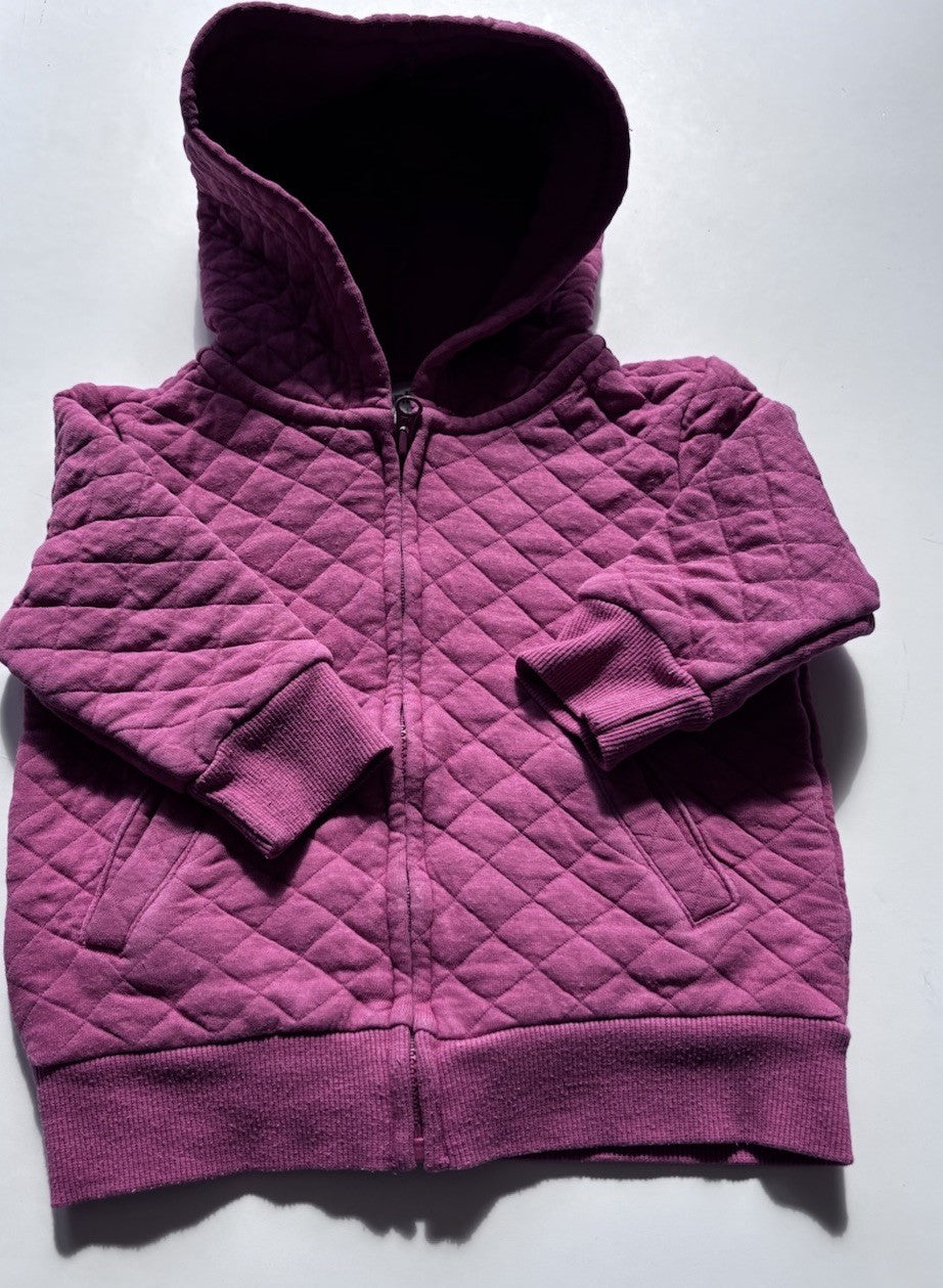 Anko baby girl size 12-18 months pink quilted hooded zip up jumper, VG