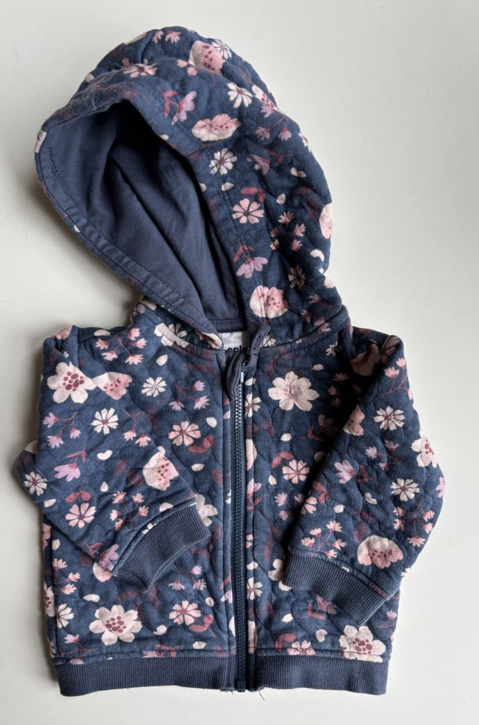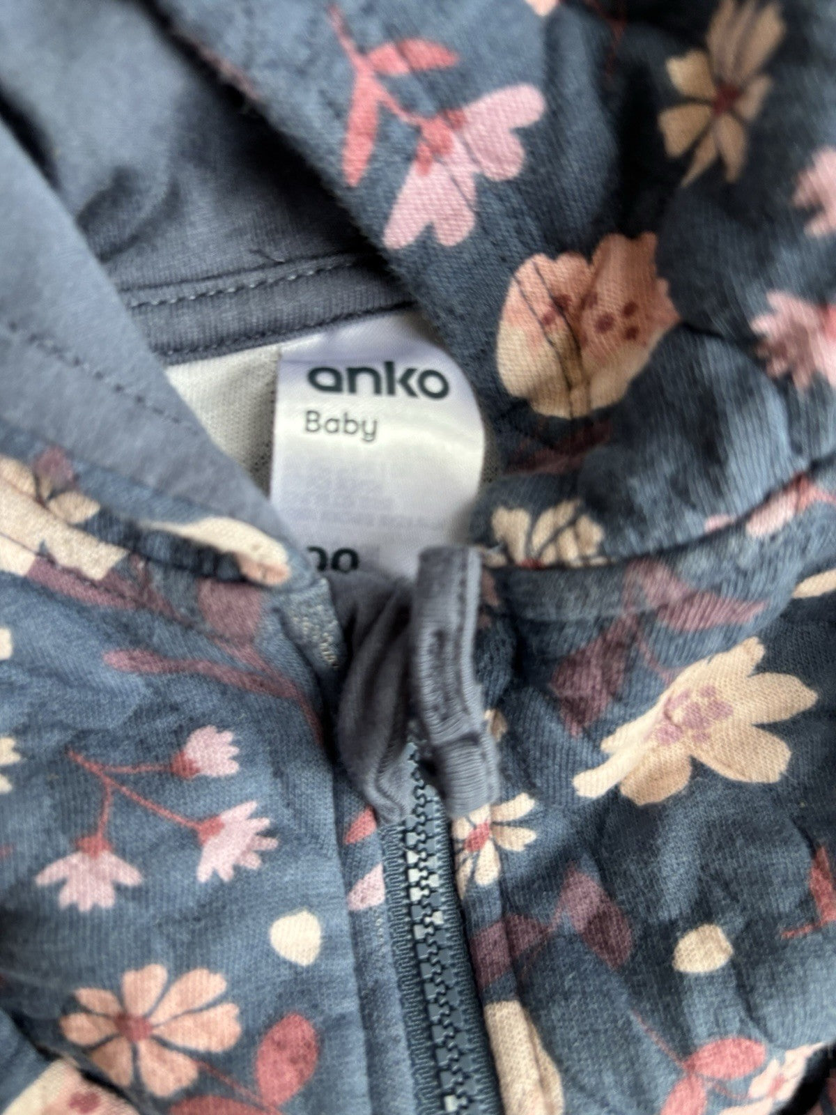 Anko baby girl size 3-6 months blue pink floral quilted hooded jumper,
