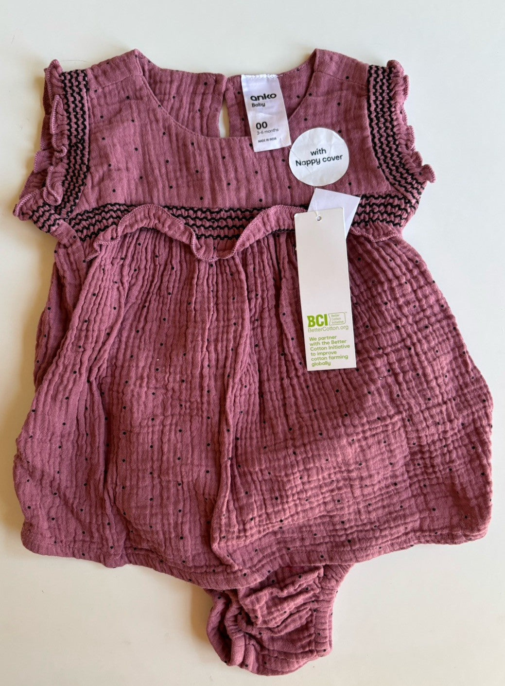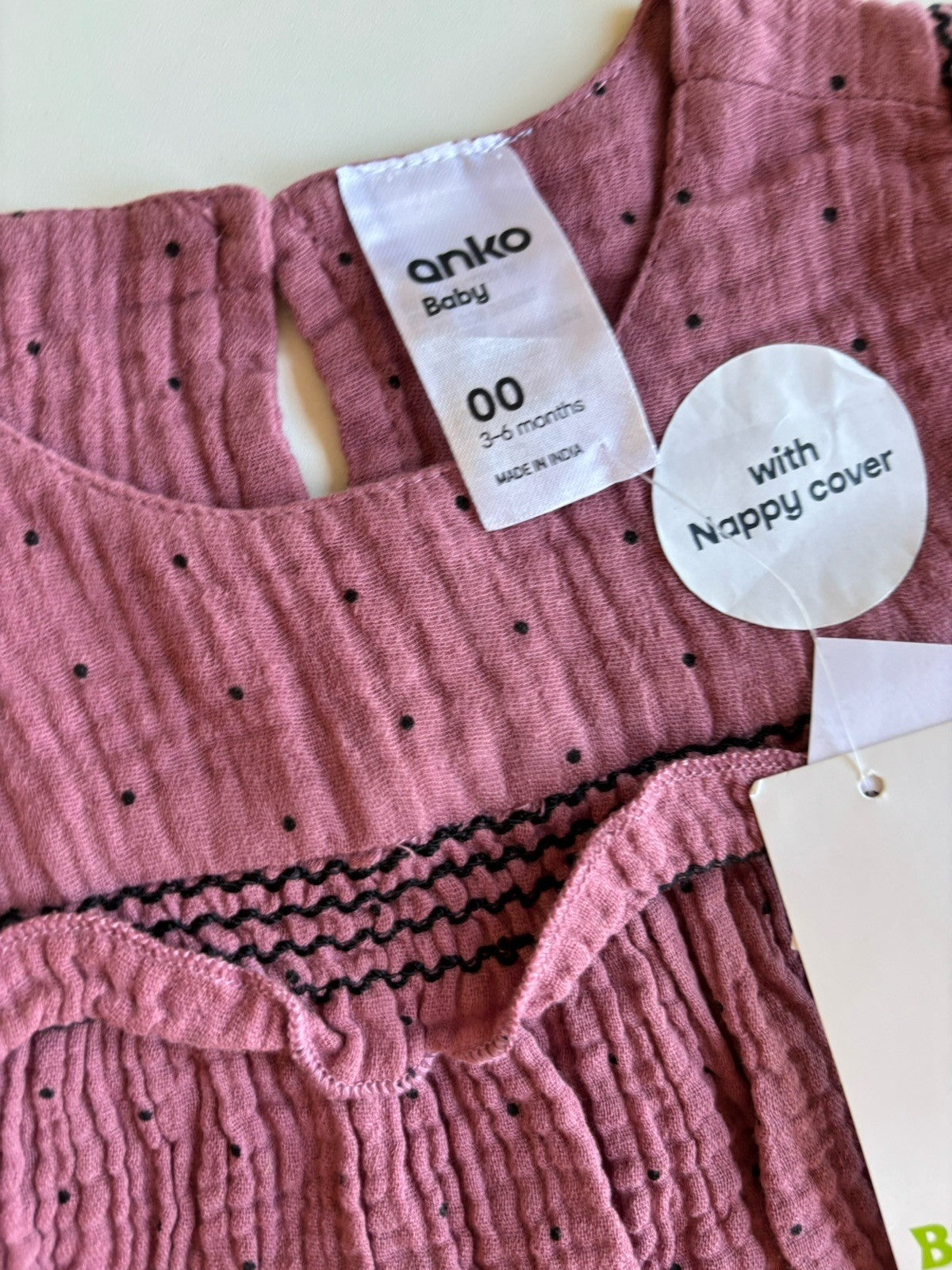 Anko baby girl size 3-6 months dusty pink spotted dress bloomers, BNWT