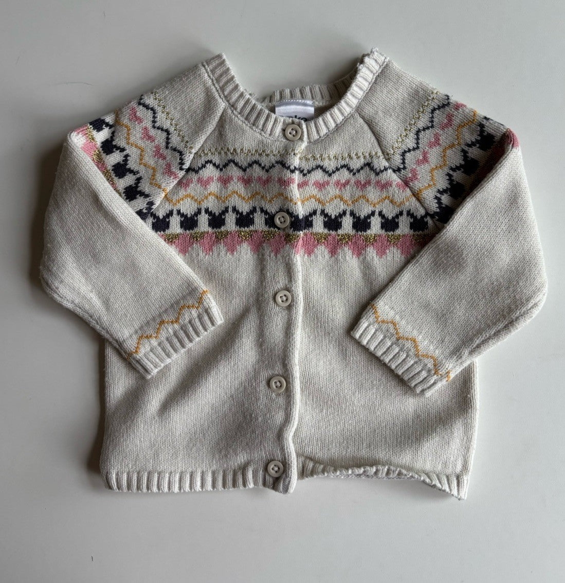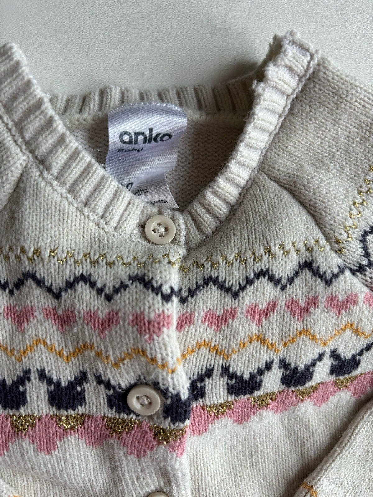 Anko baby girl size 3-6 months white pink pattern knit cardigan, VGUC