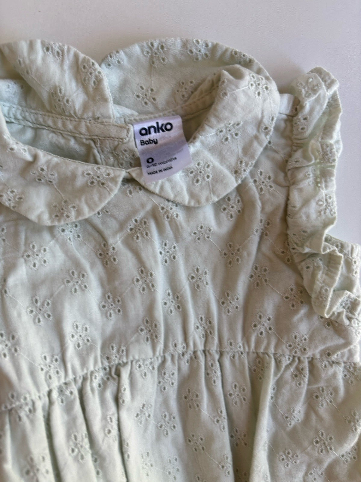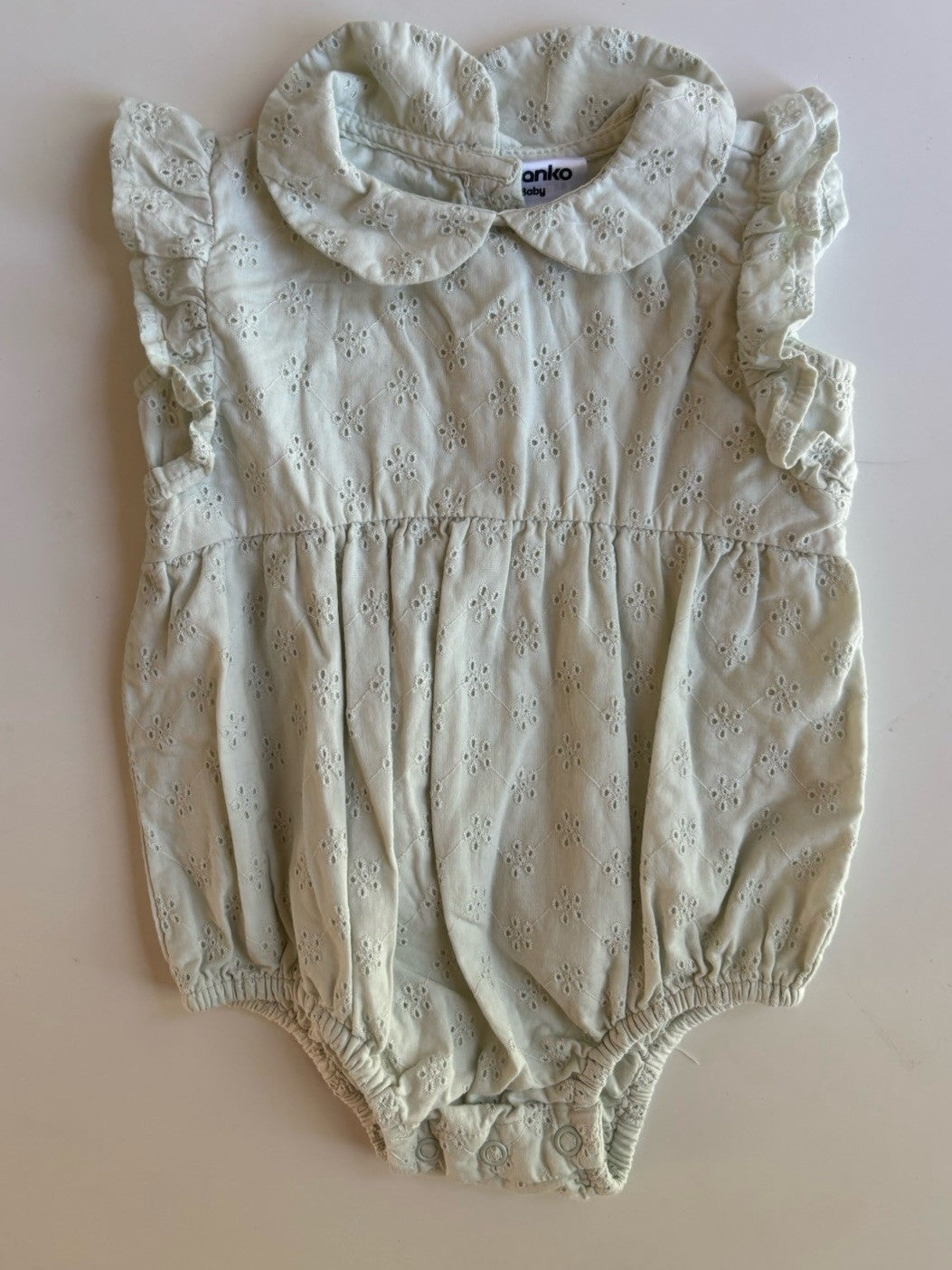 Anko baby girl size 6-12 months green lace collared romper, VGUC