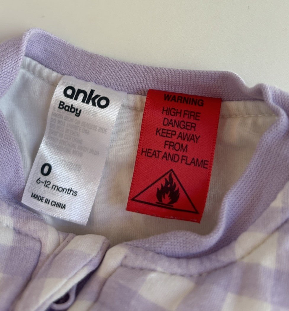 Anko baby girl size 6-12 months purple white check thick sleeping bag, VGUC