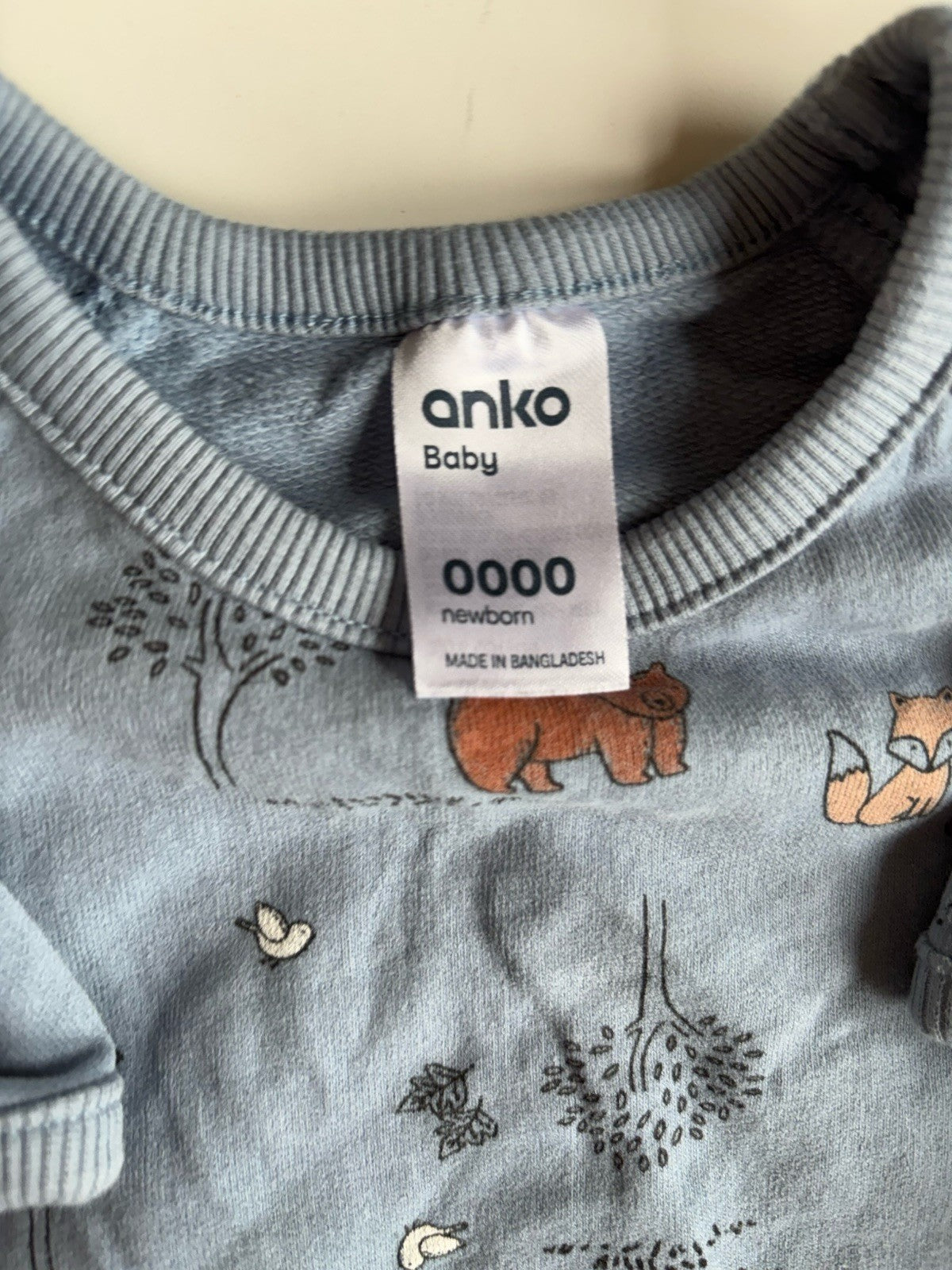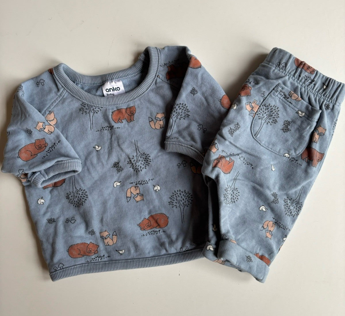Anko baby size newborn blue woodland animals tracksuit set, VGUC