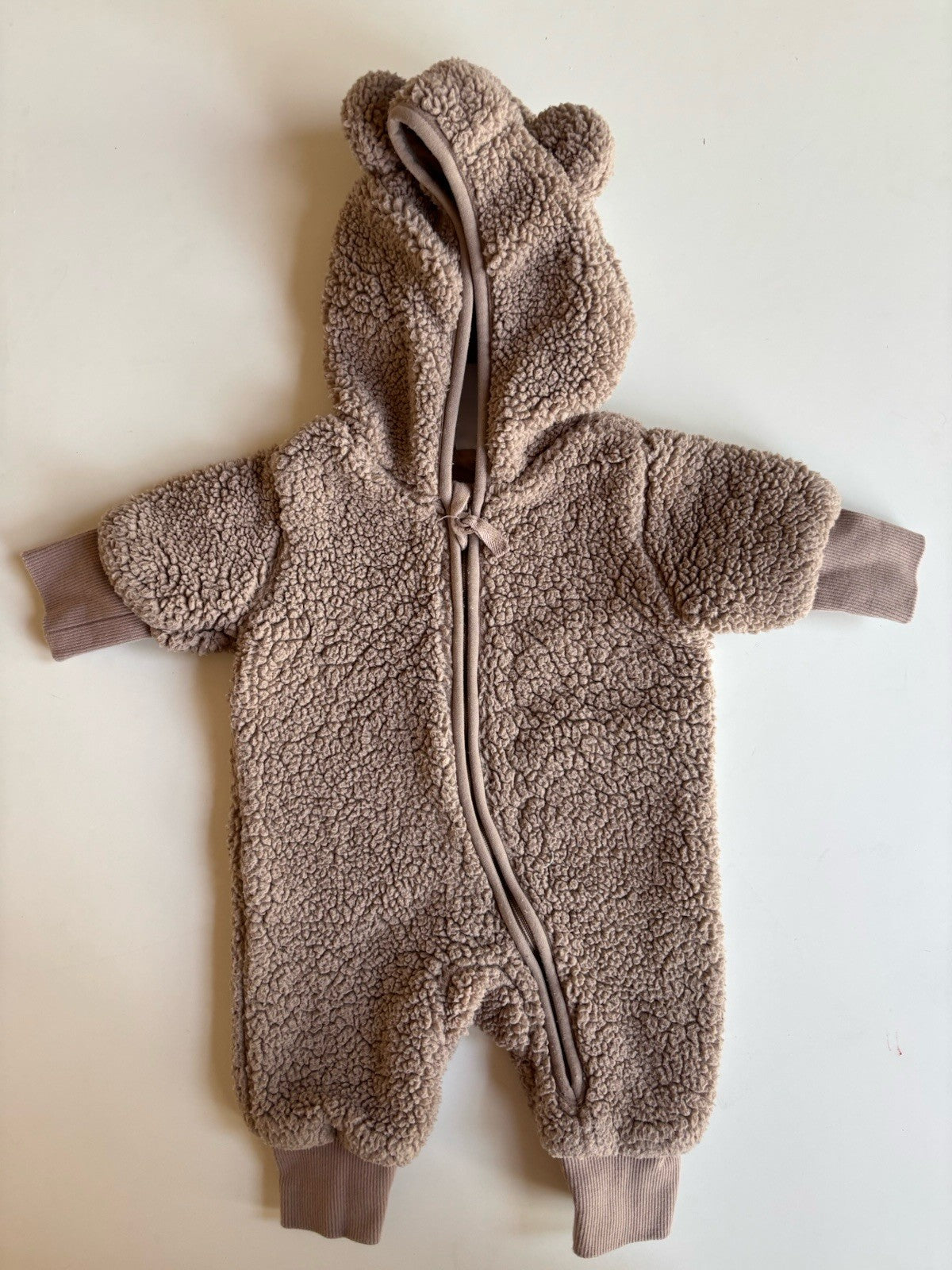 Anko baby size newborn brown fluffy hooded bear one-piece, VGUC