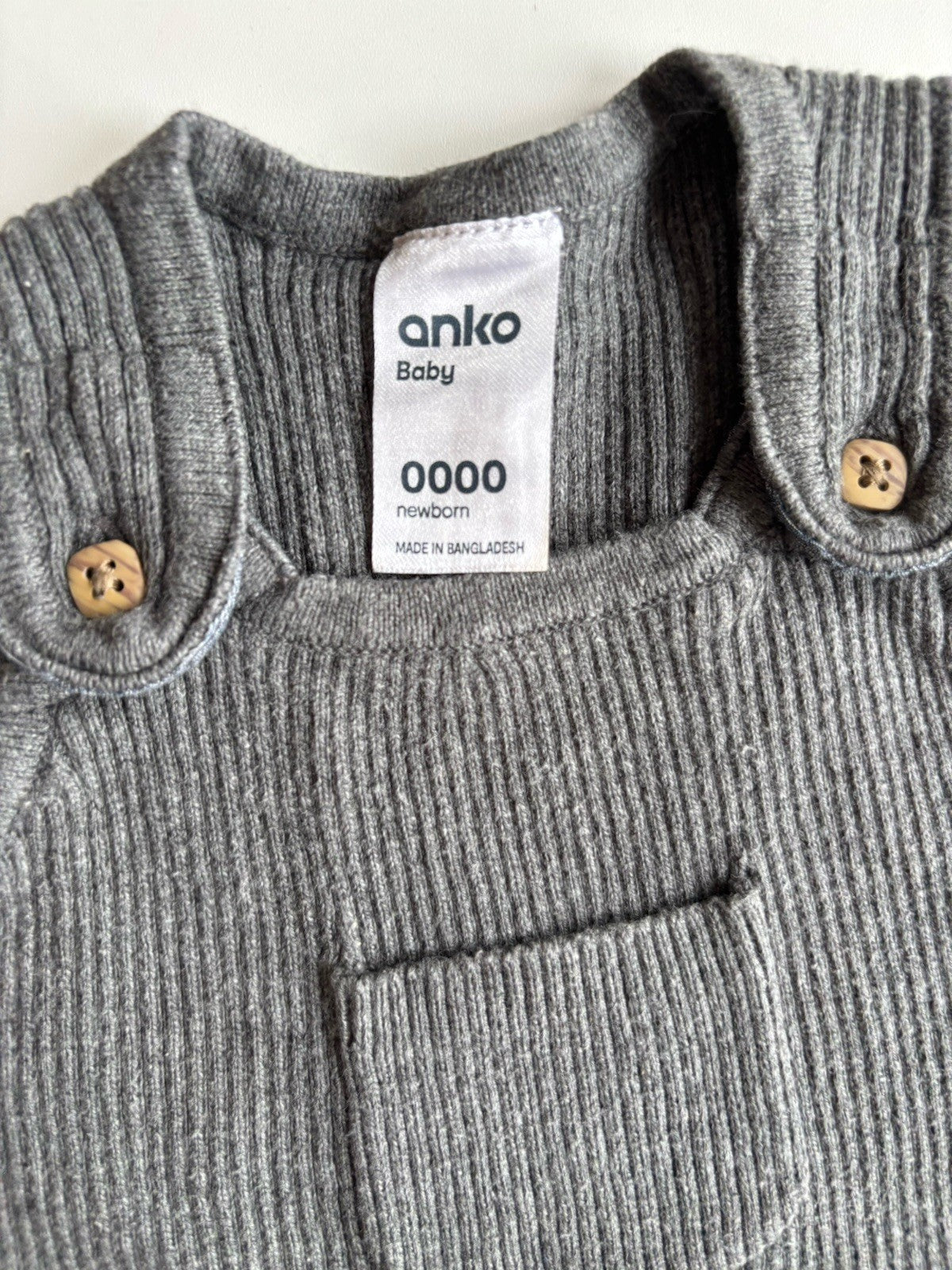 Anko baby size newborn grey ribbed knit jumpsuit one-piece, VGUC