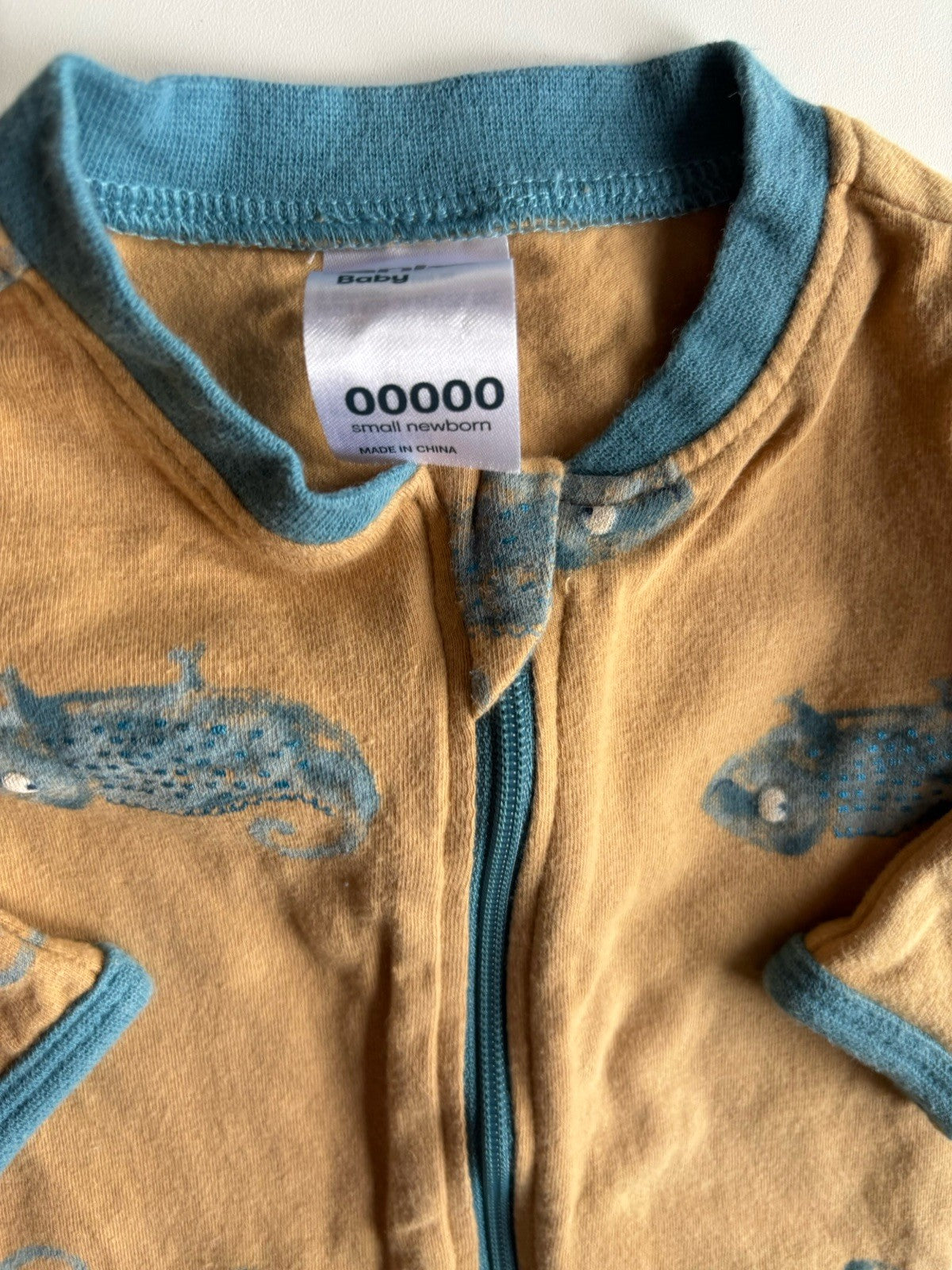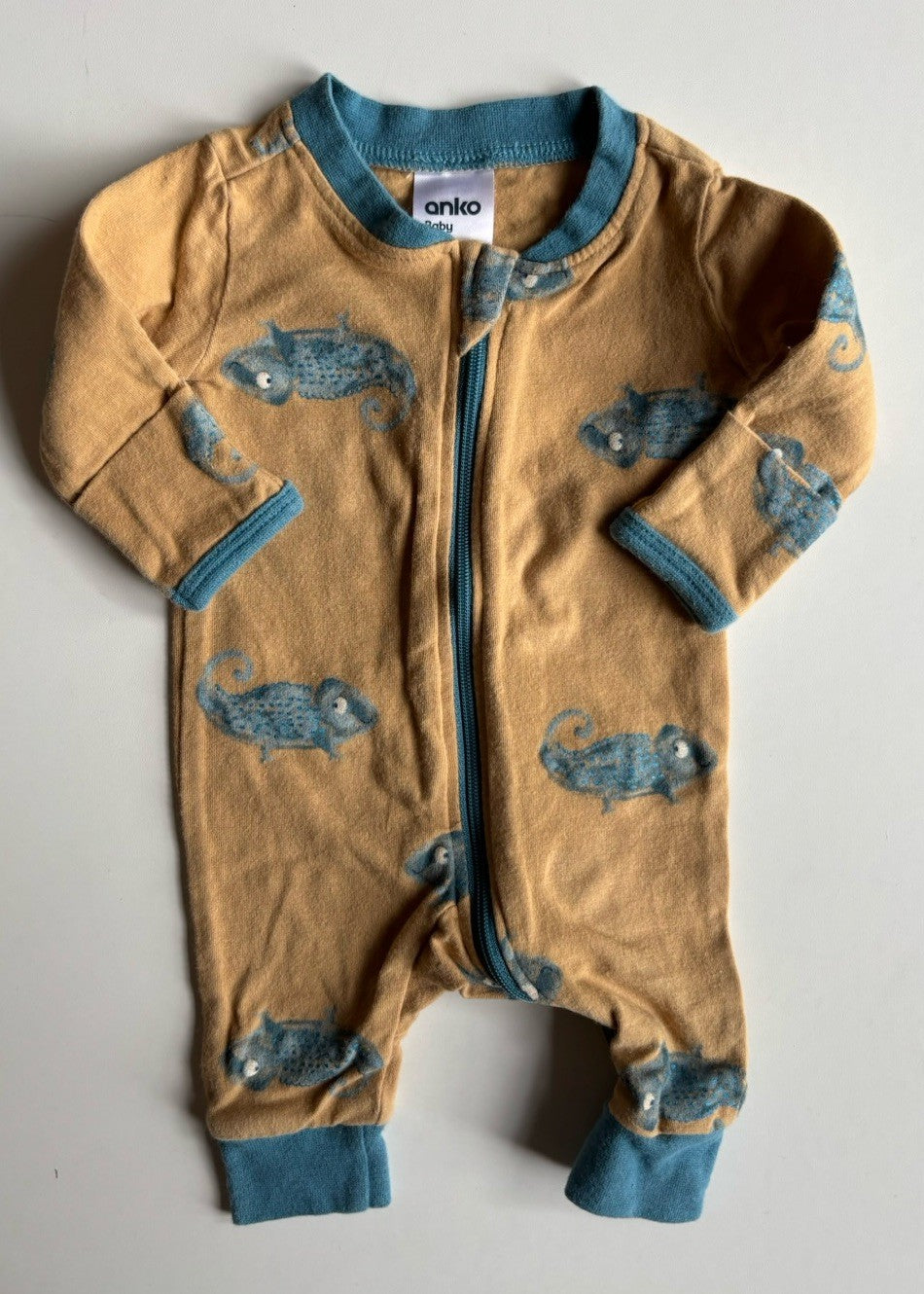 Anko baby size prem small baby brown blue chameleon one-piece, VGUC