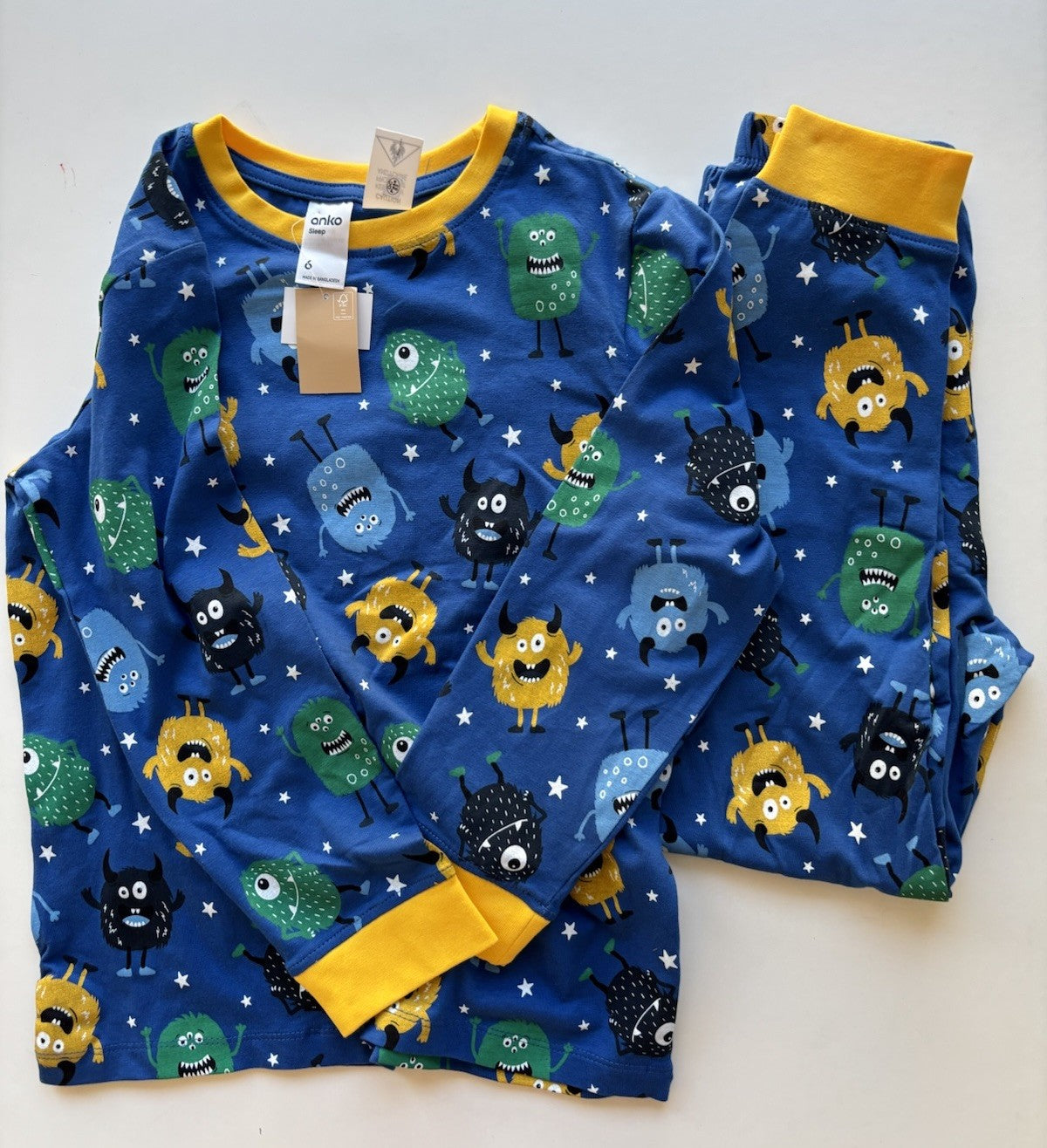 Anko kids boys size 6 blue monsters PJ set sleepwear, BNWT
