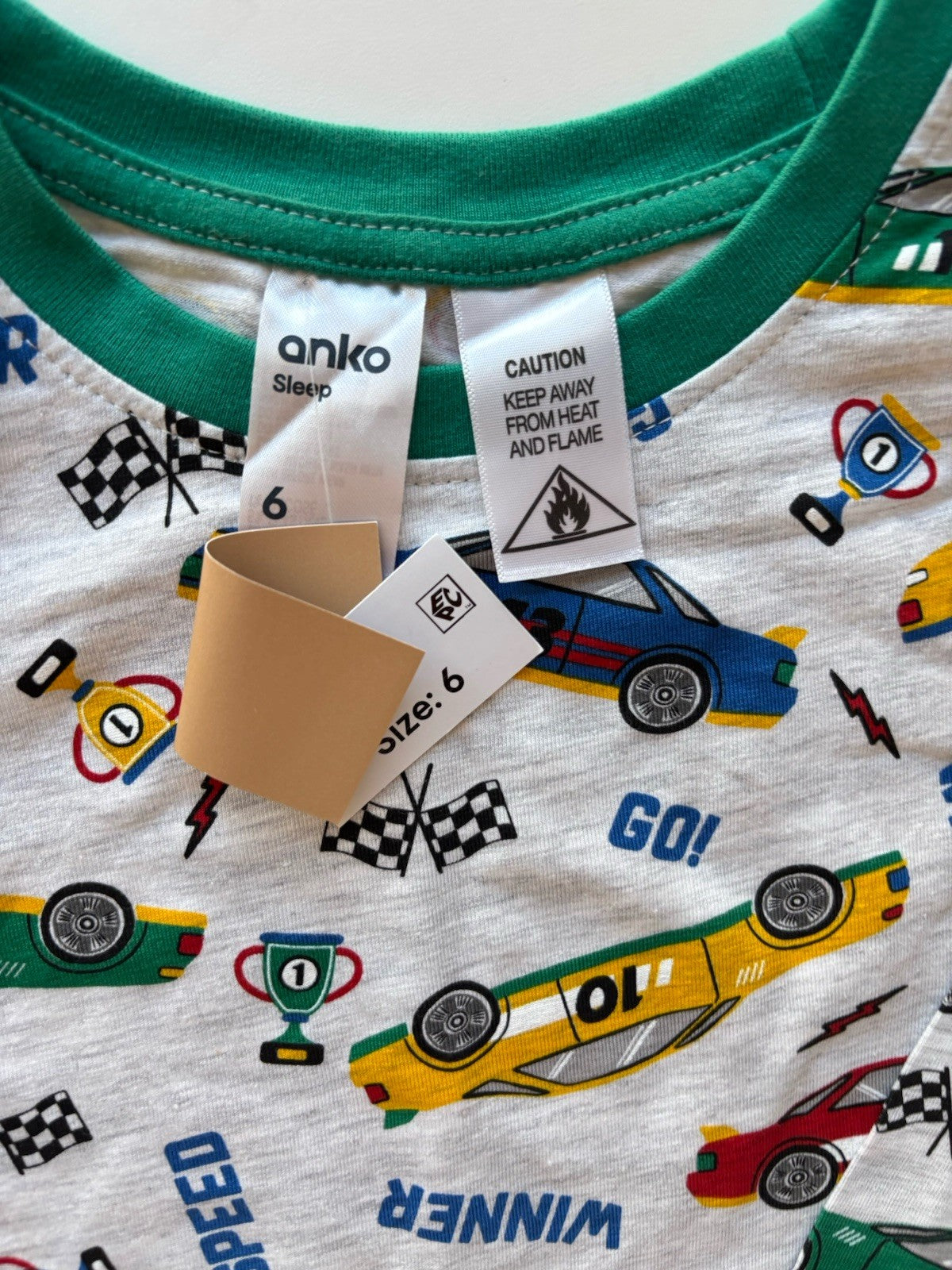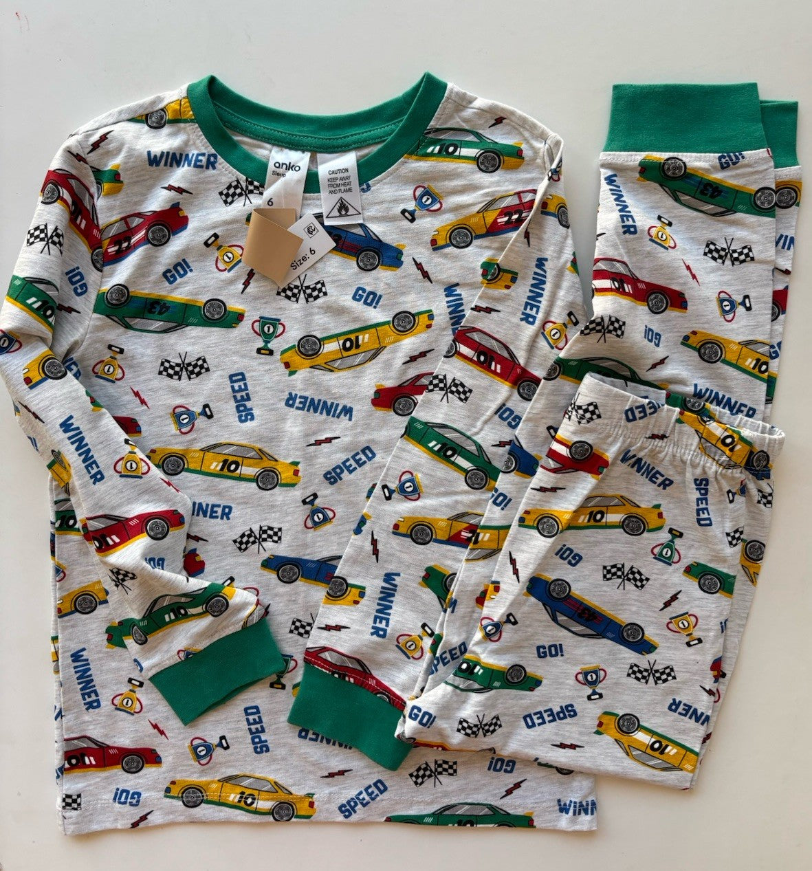 Anko kids boys size 6 grey green racing cars PJ set sleepwear, BNWT