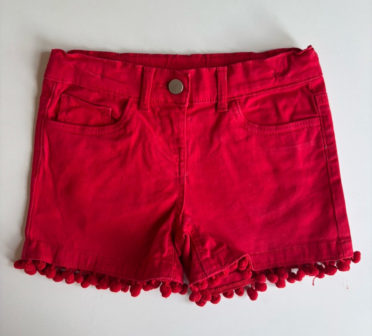 Anko kids girls size 7 red pom pom shorts, VGUC