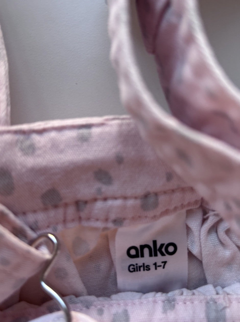 Anko kids girls toddler size 2 pink grey spot pinafore dress, VGUC