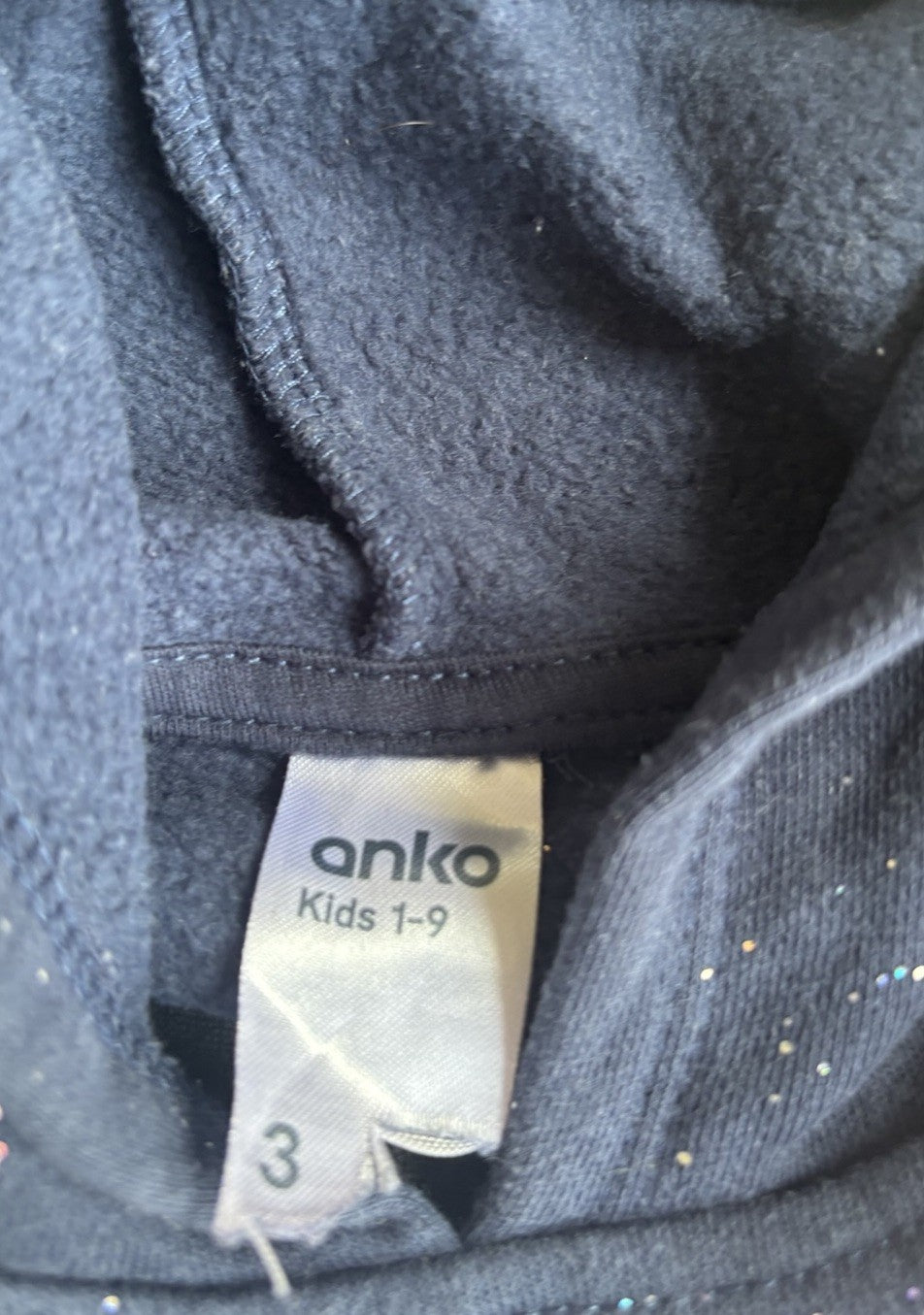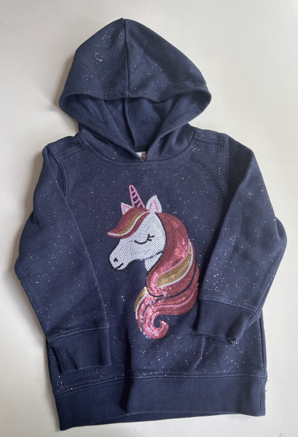 Anko kids girls toddler size 3 blue hooded glitter sequin unicorn jumper, VGUC