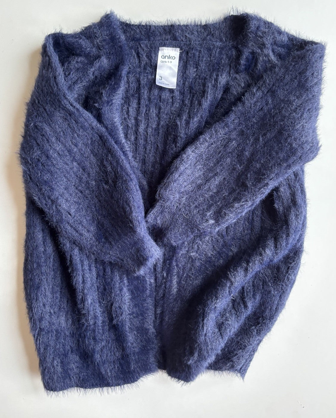Anko kids girls toddler size 3 navy blue fluffy cardigan, VGUC