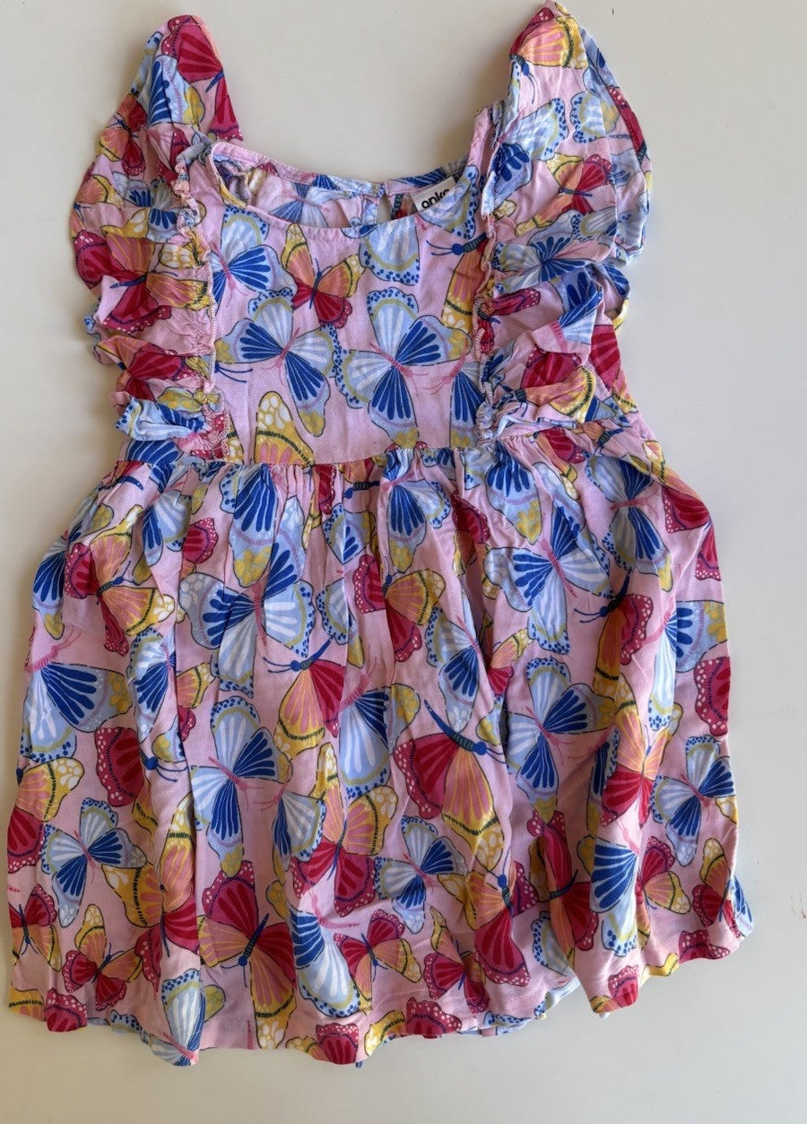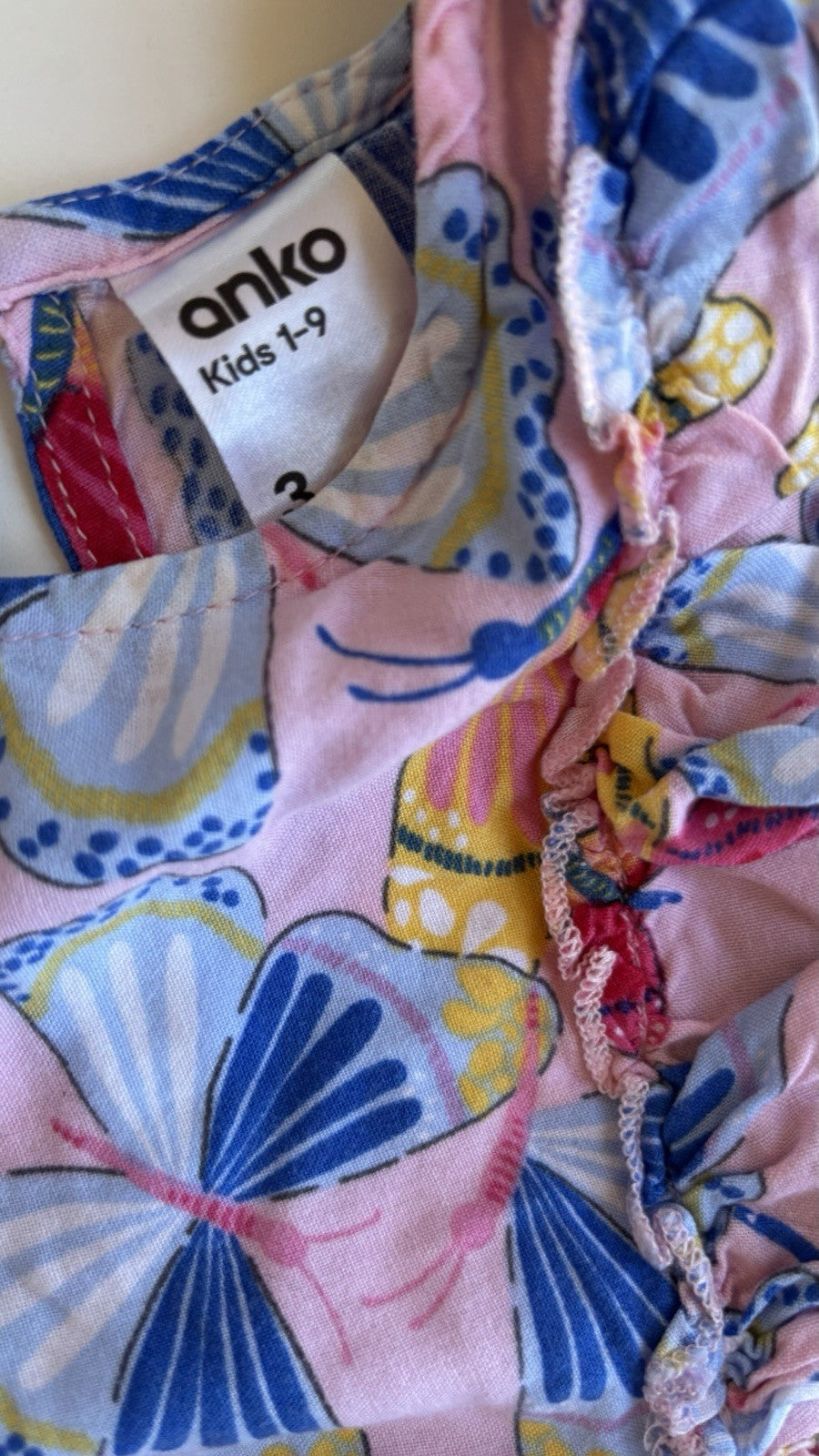 Anko kids girls toddler size 3 pink butterflies dress, VGUC