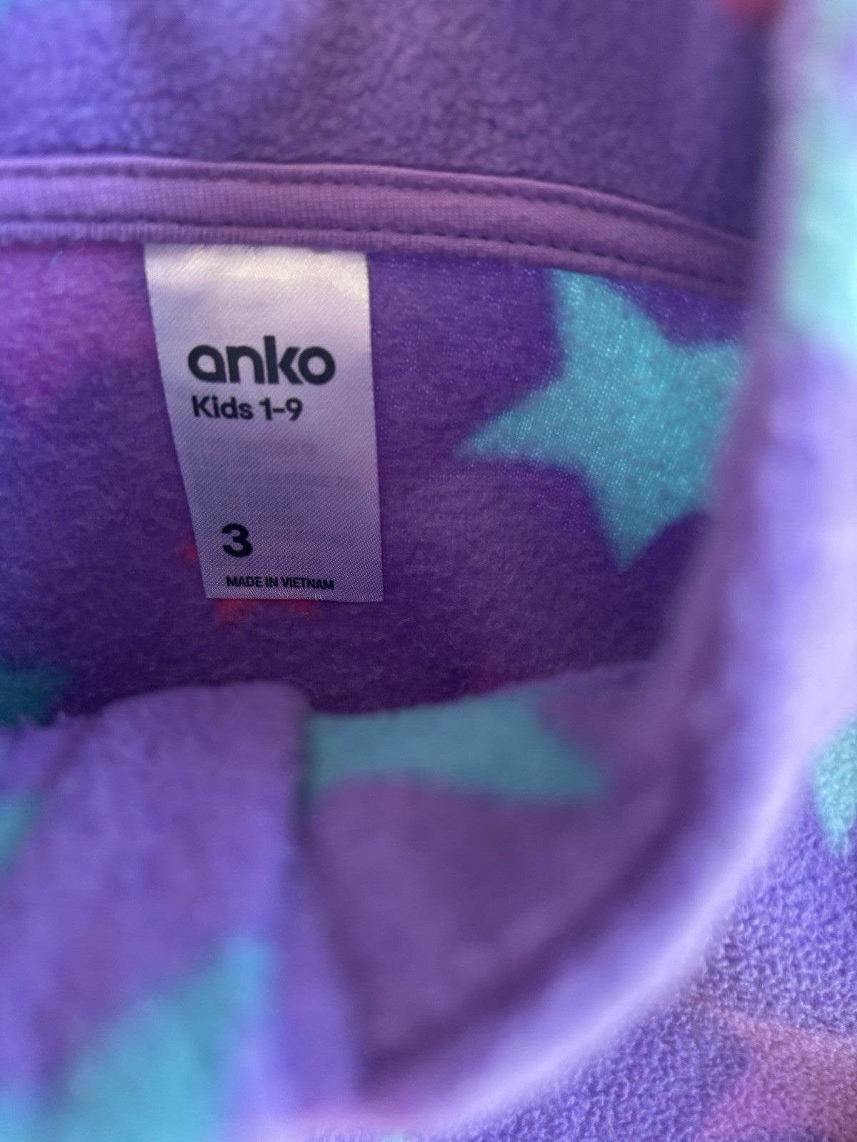 Anko kids girls toddler size 3 purple stars fleecy zip up jumper, VGUC