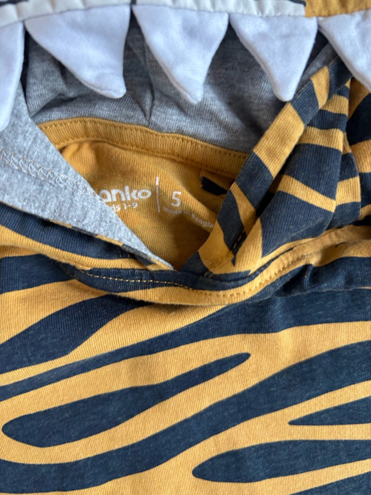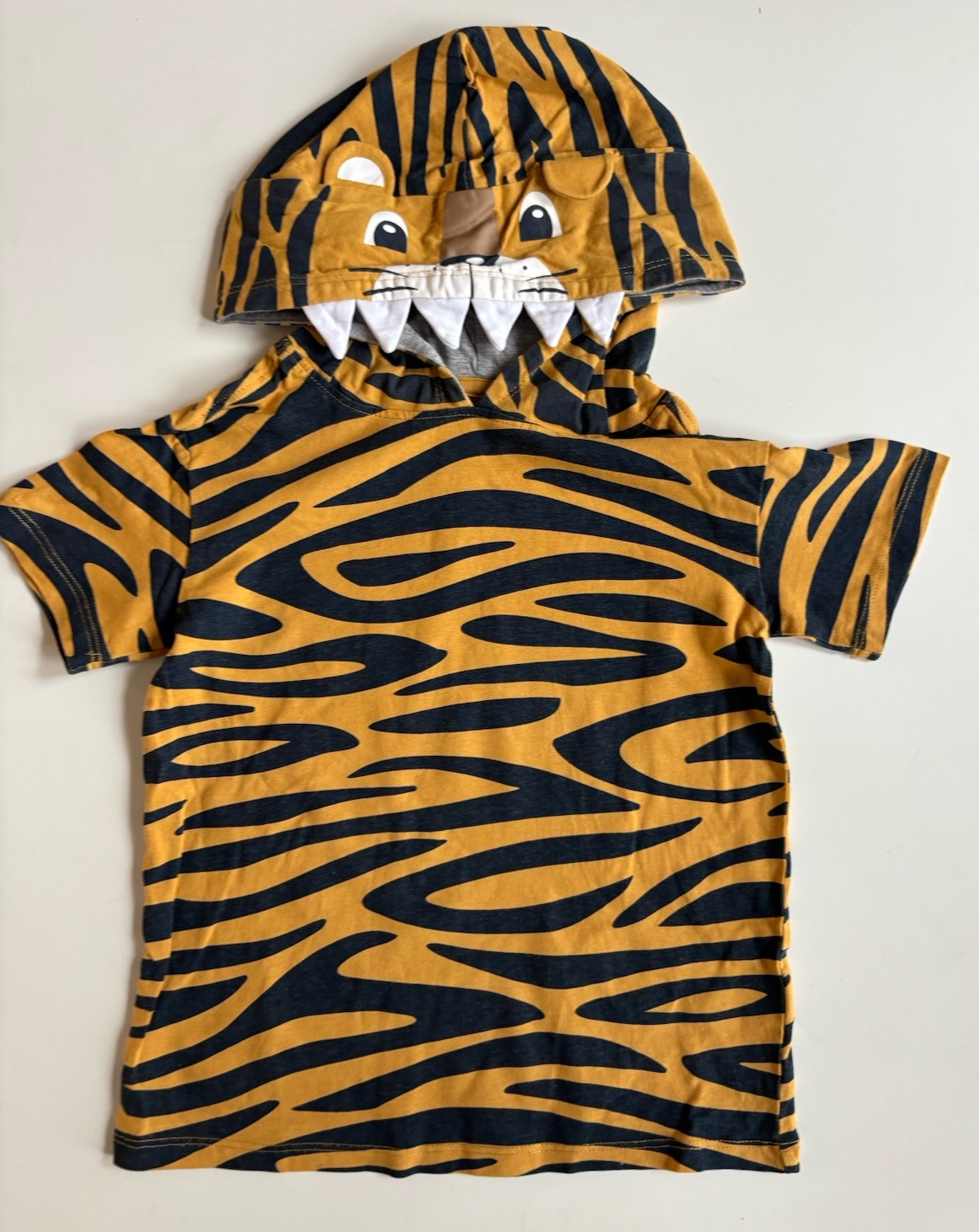 Anko kids size 5 black yellow stripe tiger short sleeve hooded tshirt,