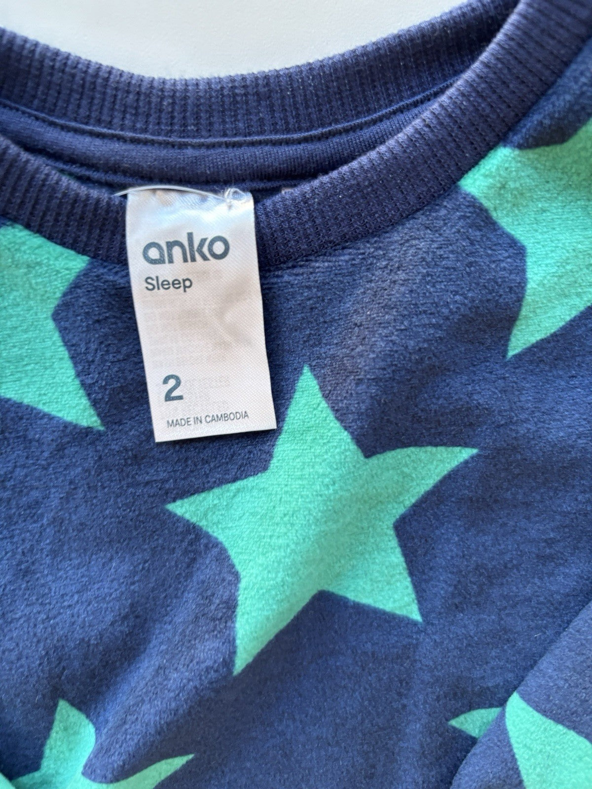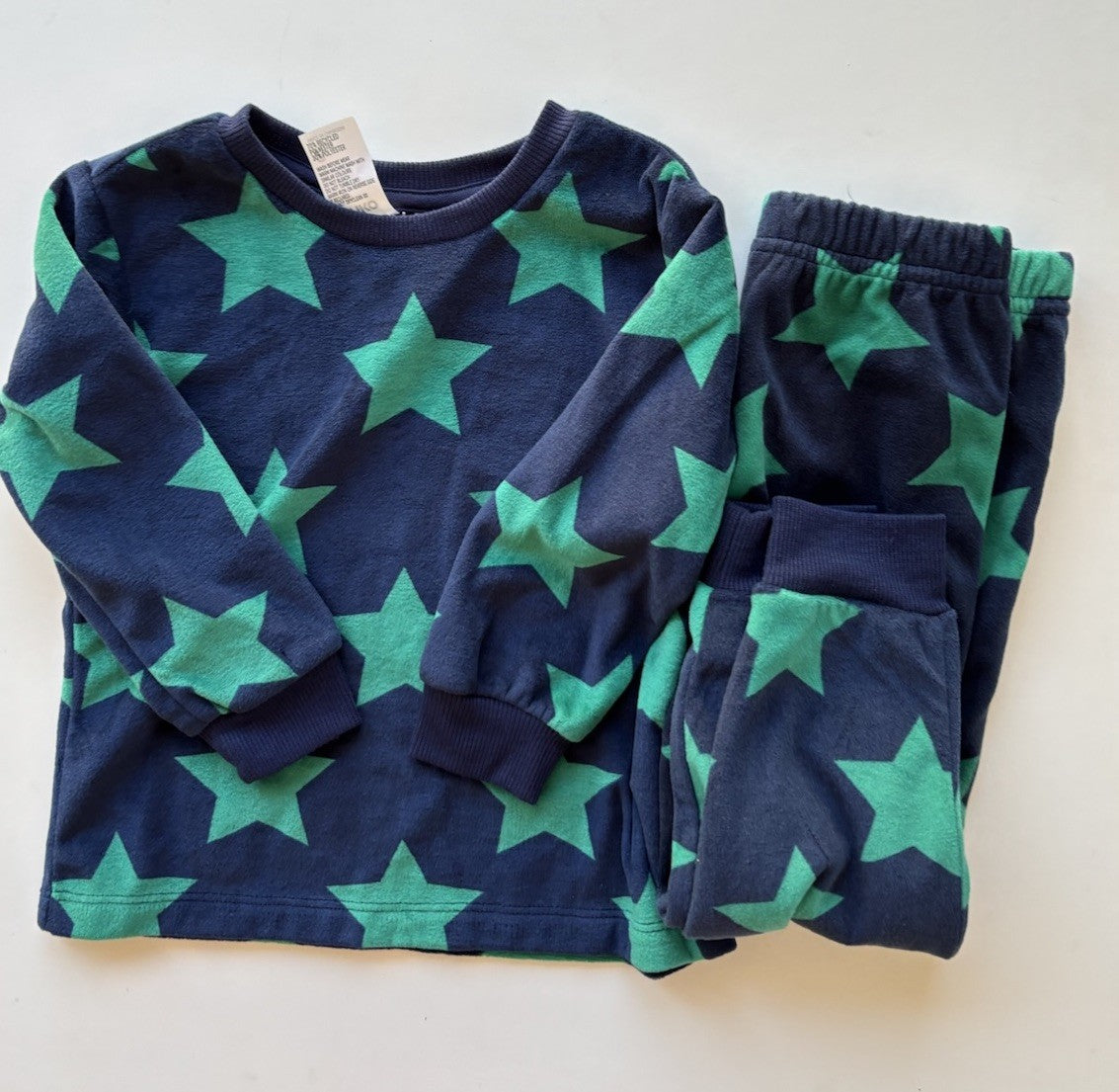 Anko kids toddler size 2 navy blue green stars soft PJ set, EUC