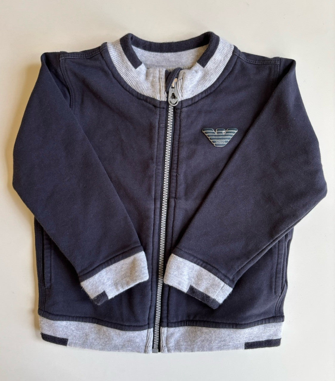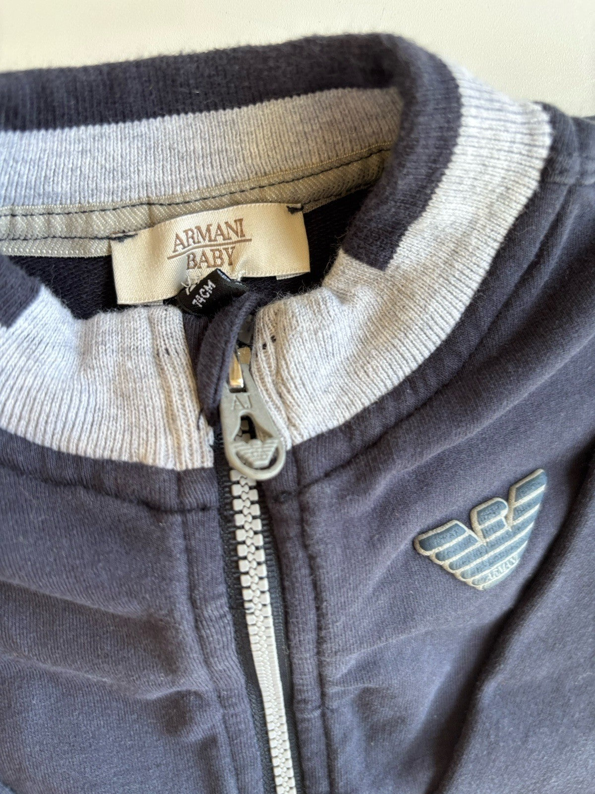 Armani baby boy size 9-12 months navy blue zip up jumper, EUC