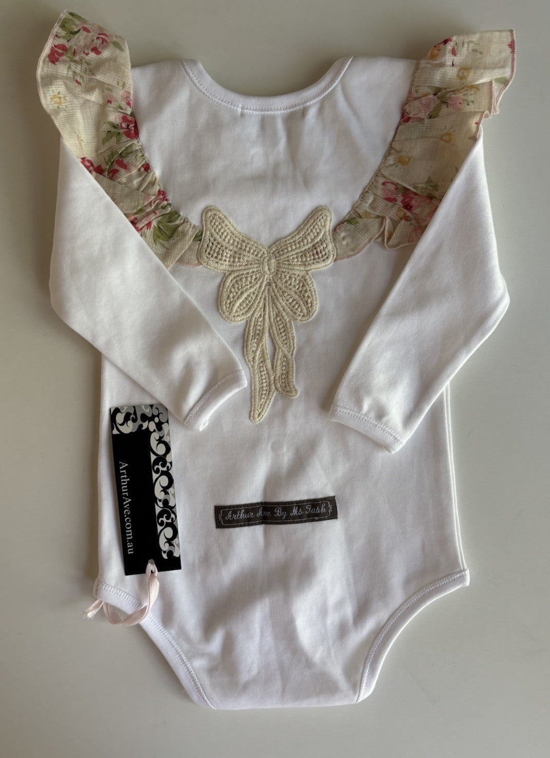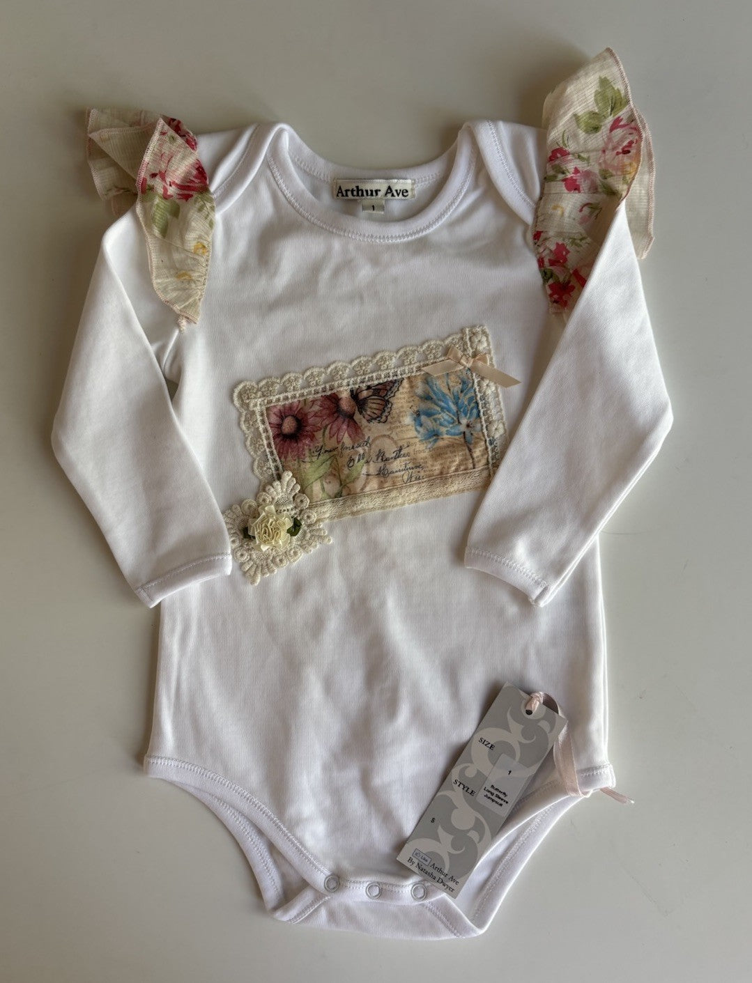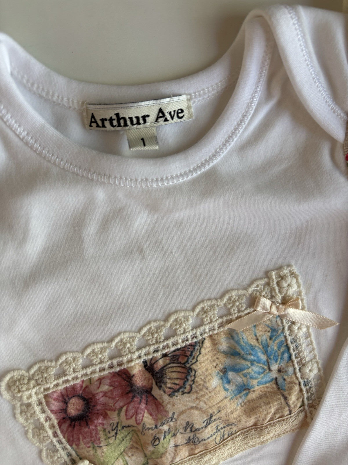 Arthur Ave. baby girl size 12-18 months white embellished bodysuit, BN