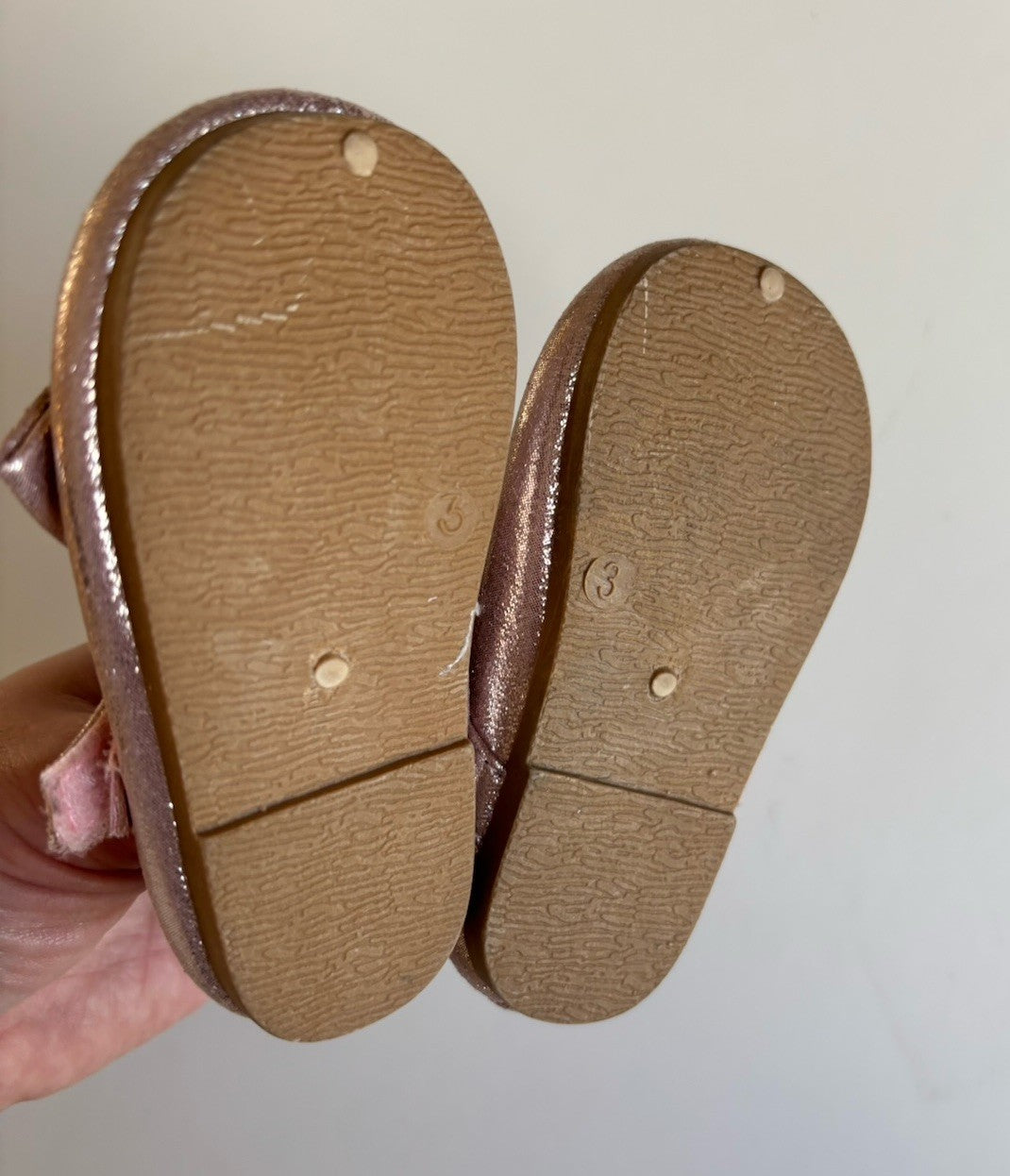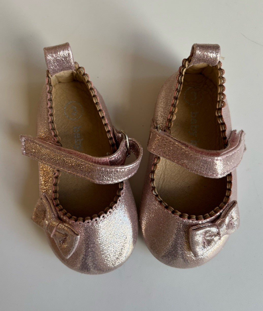 Baby Baby baby girl size 3 pink metallic bow Mary Jane shoes, EUC