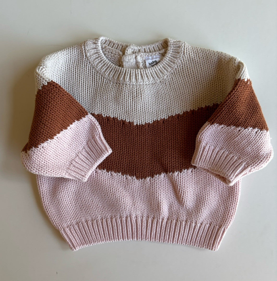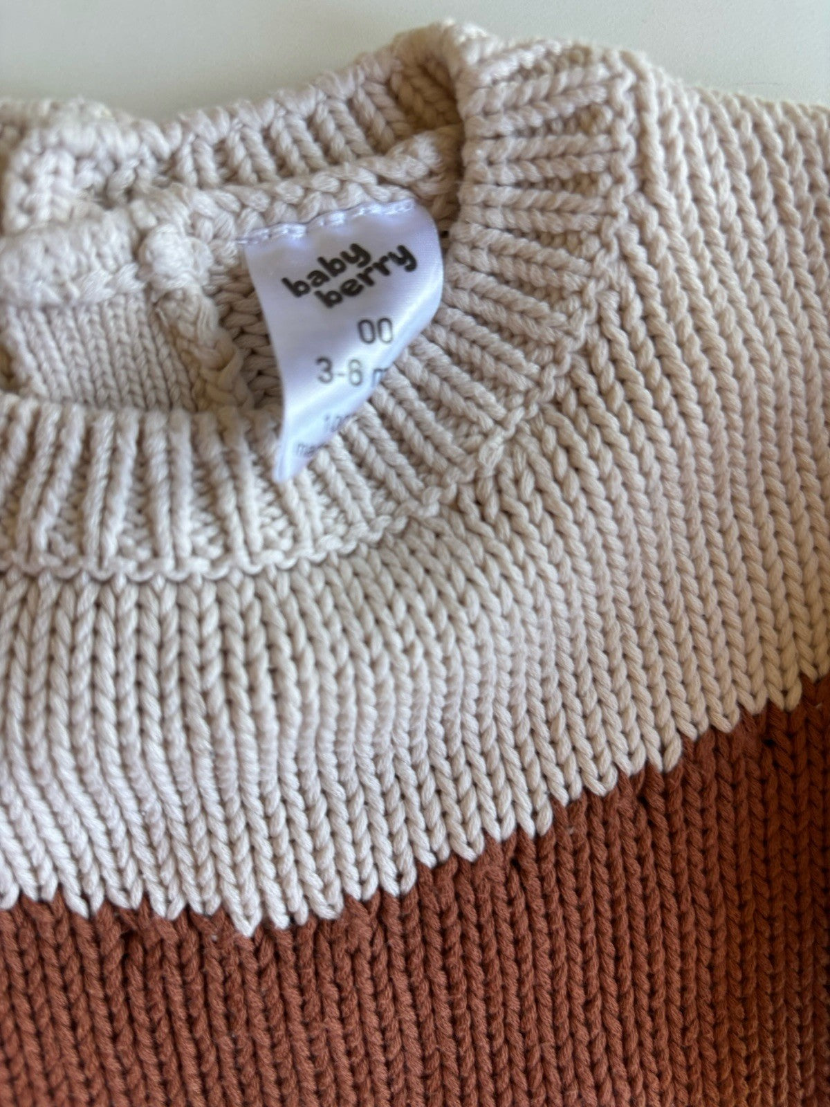 Baby Berry baby girl size 3-6 months brown pink knit pullover jumper,