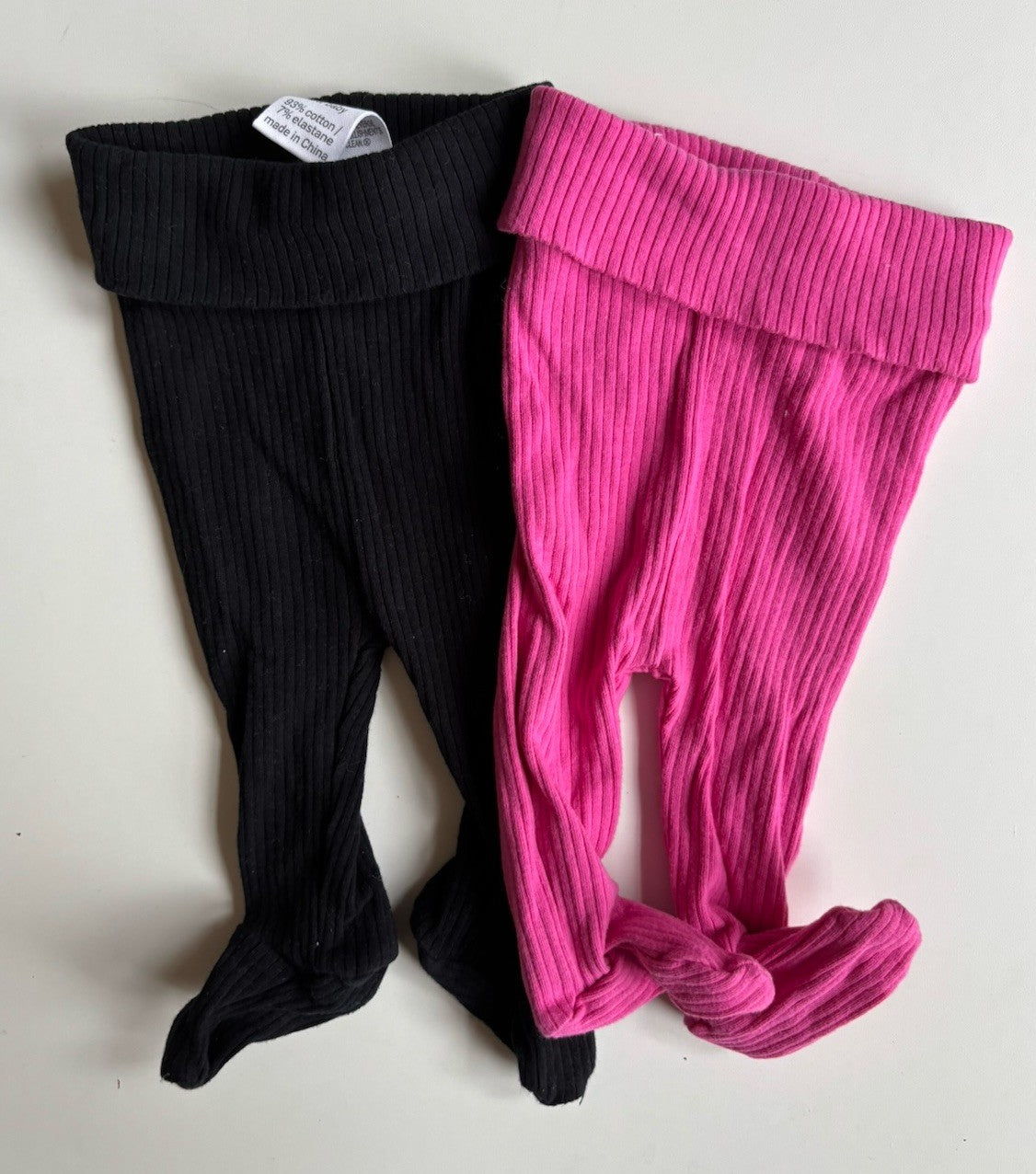 Baby Berry baby girl size newborn x2 footed ribbed leggings pink black, VGUC