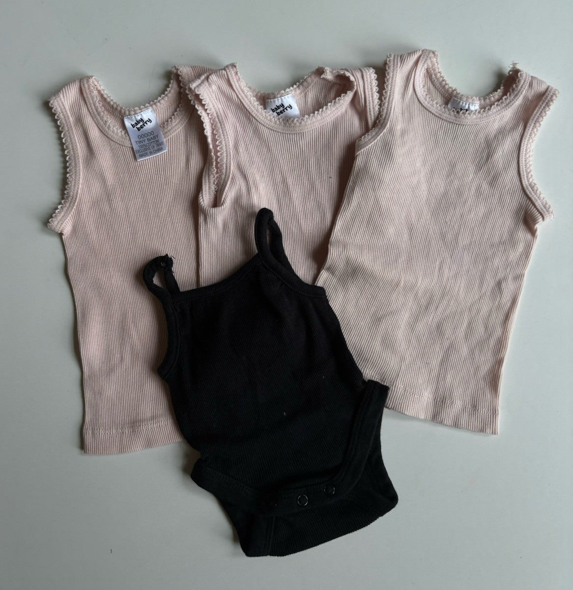 Baby Berry baby girl size tiny baby prem x4 ribbed singlets pink black