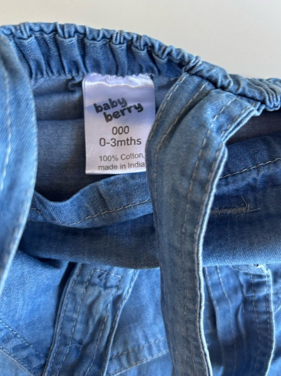 Baby Berry baby size 0-3 months blue denim one-piece, VGUC