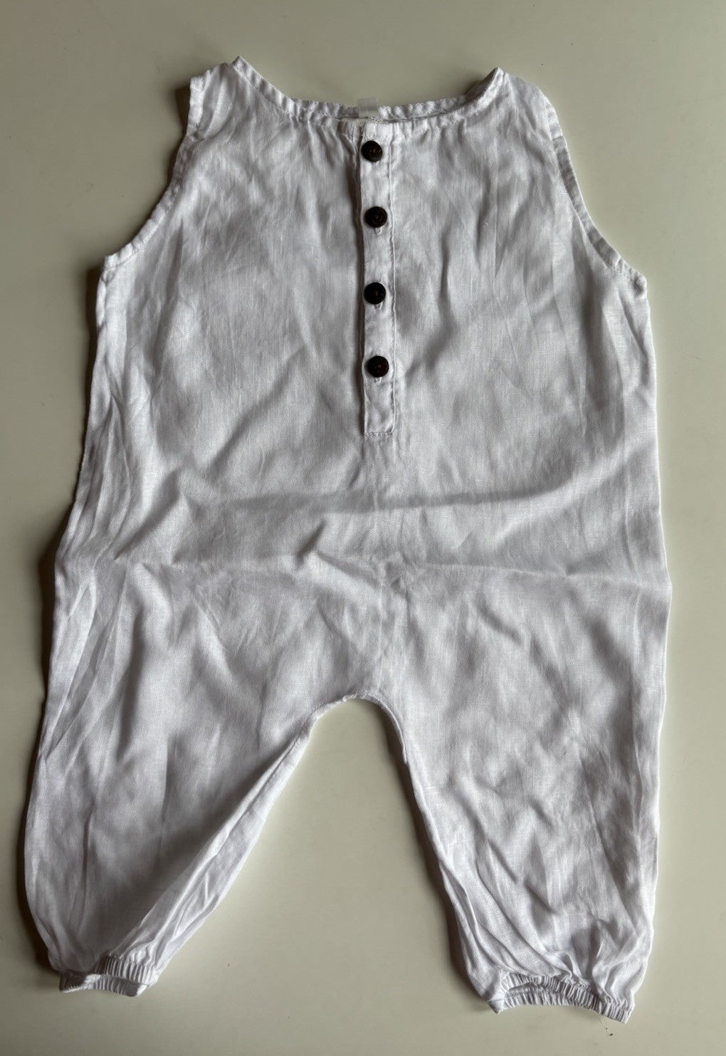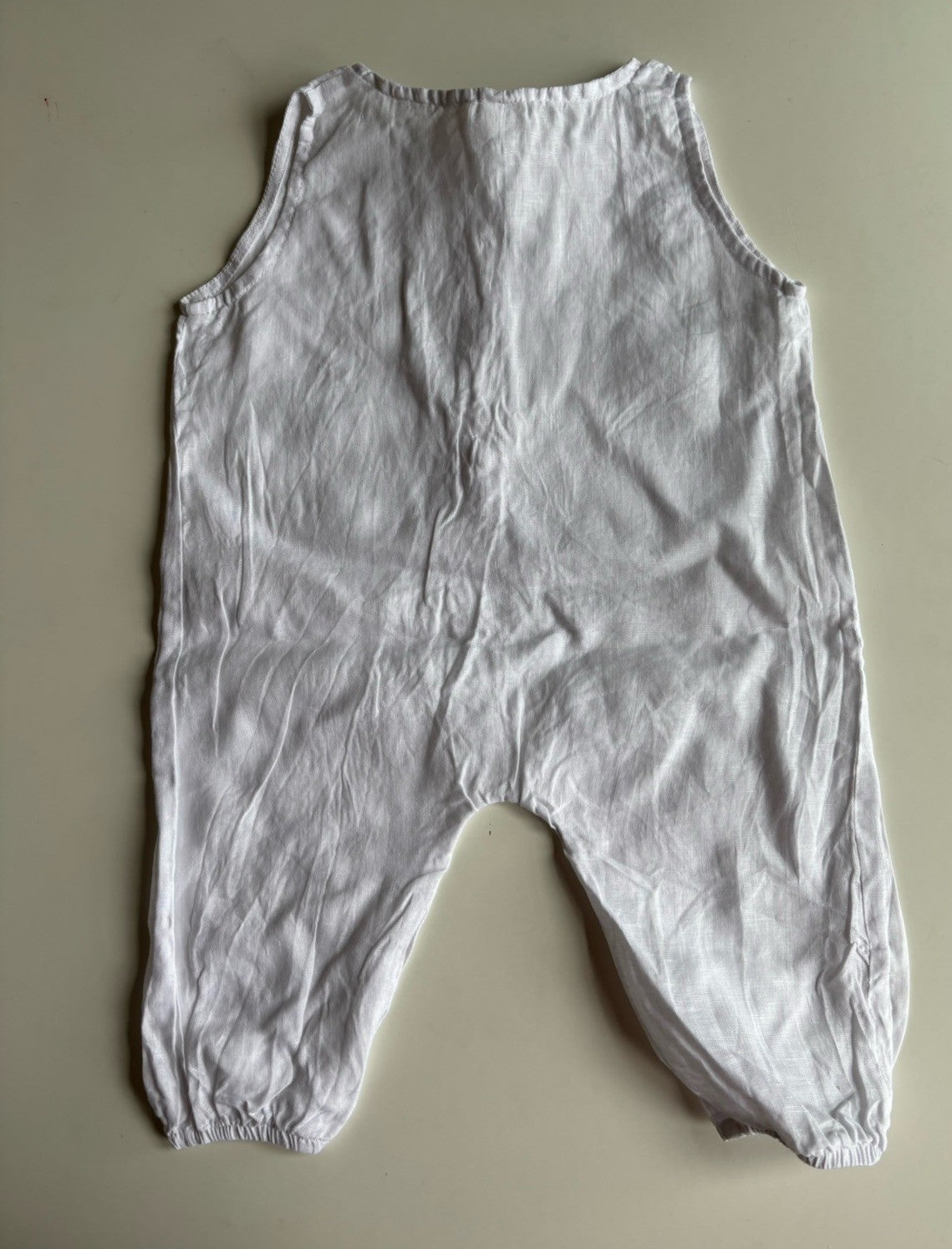 Baby Bird kids toddler size 2 white 100% linen jumpsuit one-piece, VGUC