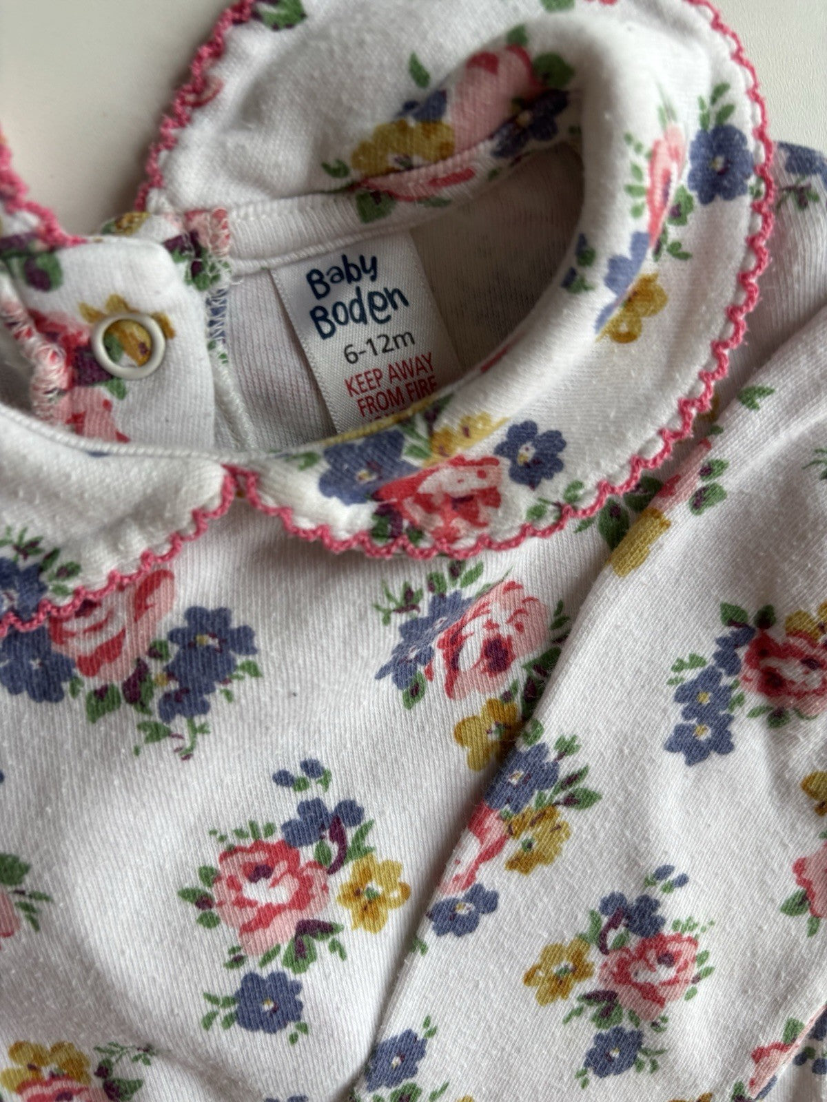 Baby Boden baby girl size 6-12 months white pink floral collared bodys