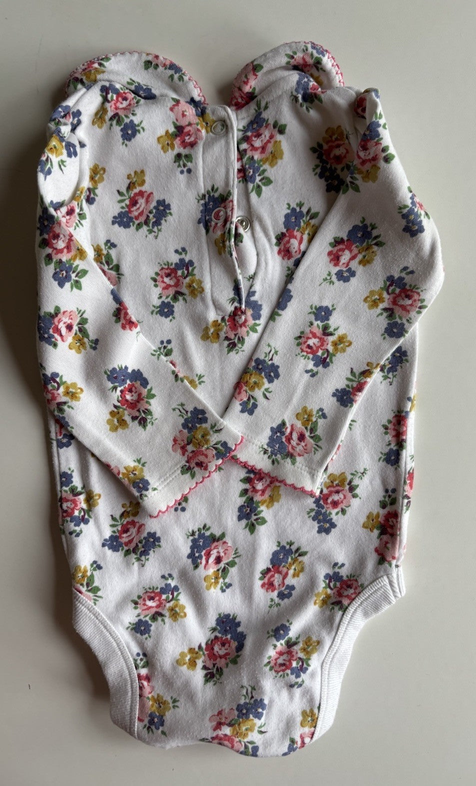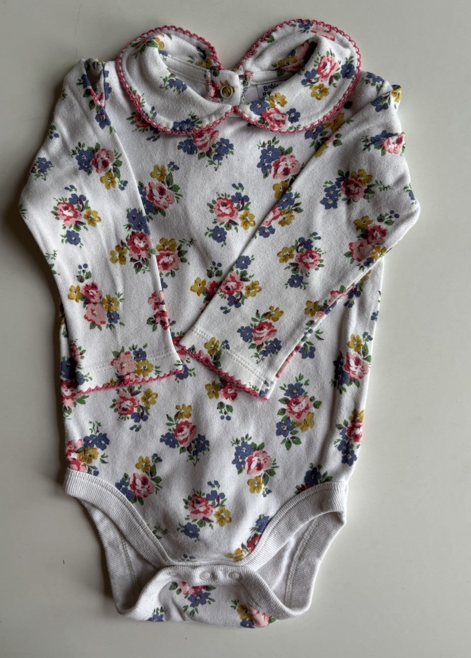 Baby Boden baby girl size 6-12 months white pink floral collared bodysuit, GUC