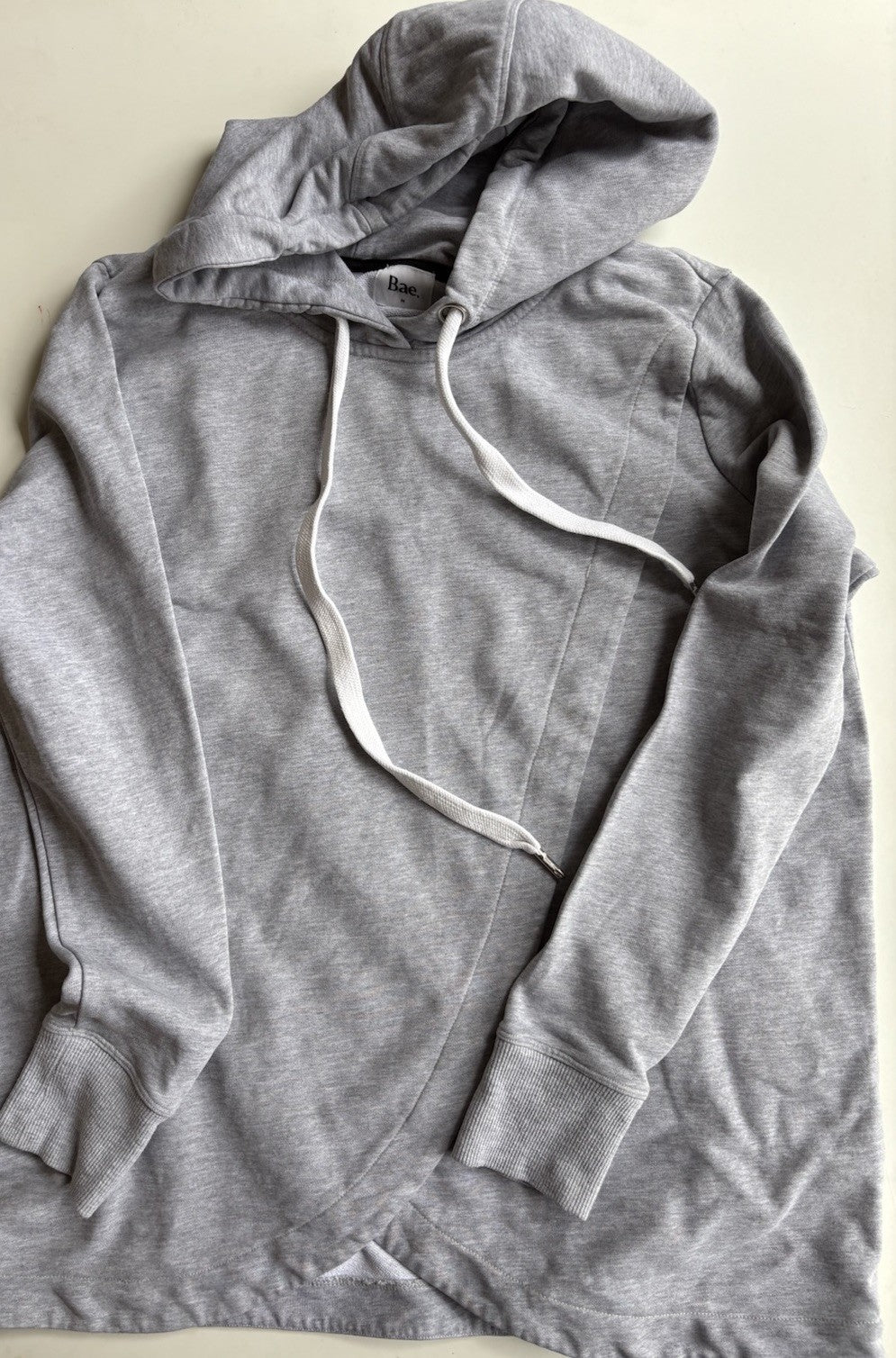 Bae Women's size M maternity feeding jumper grey wrap hooded, GUC