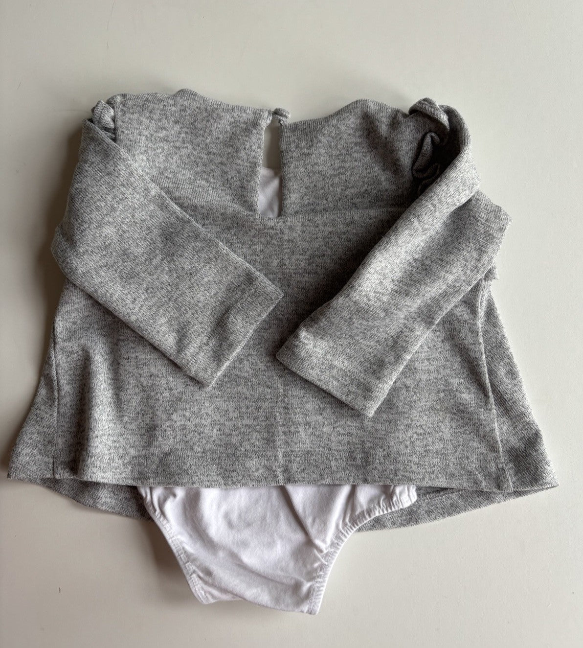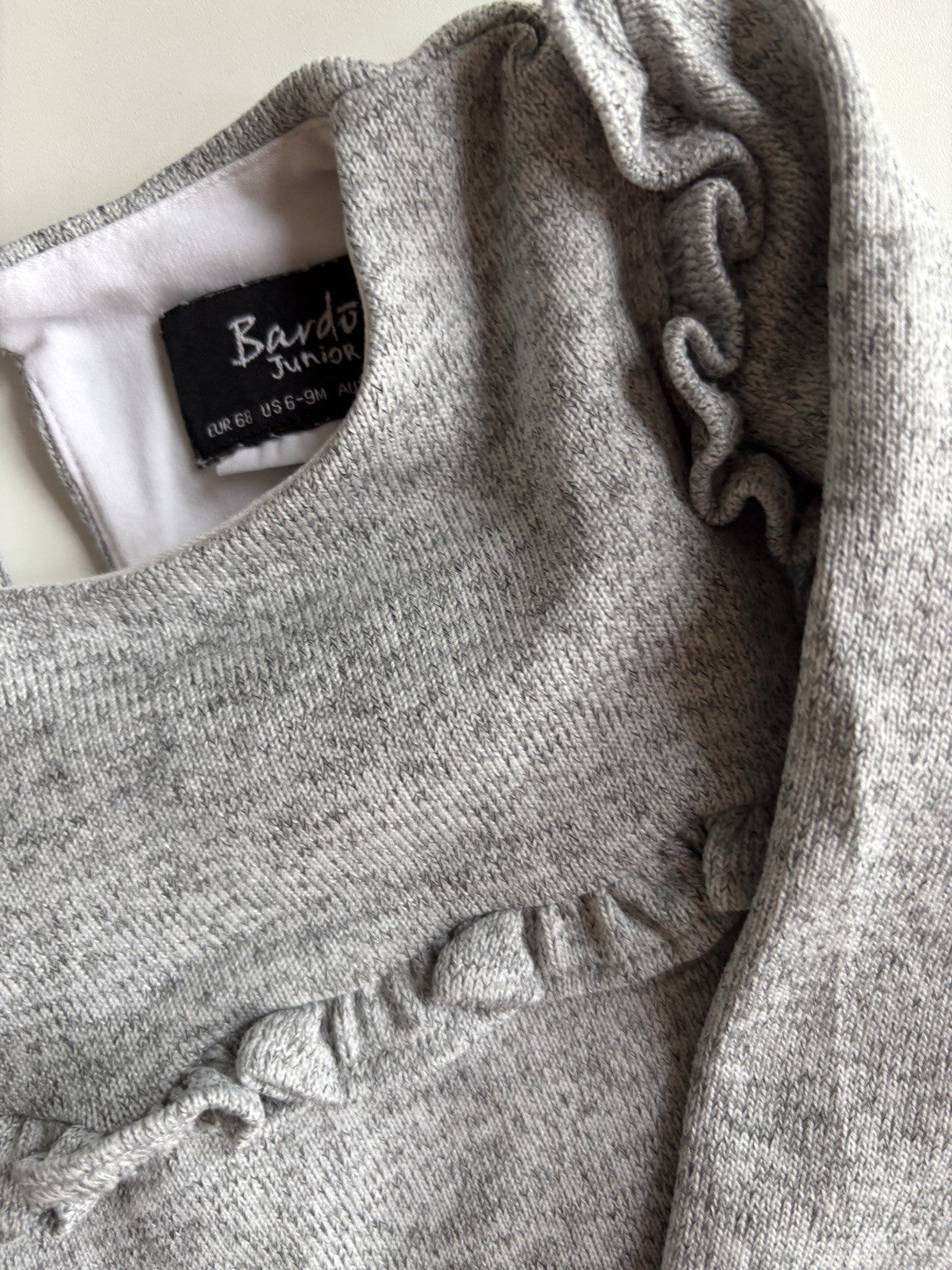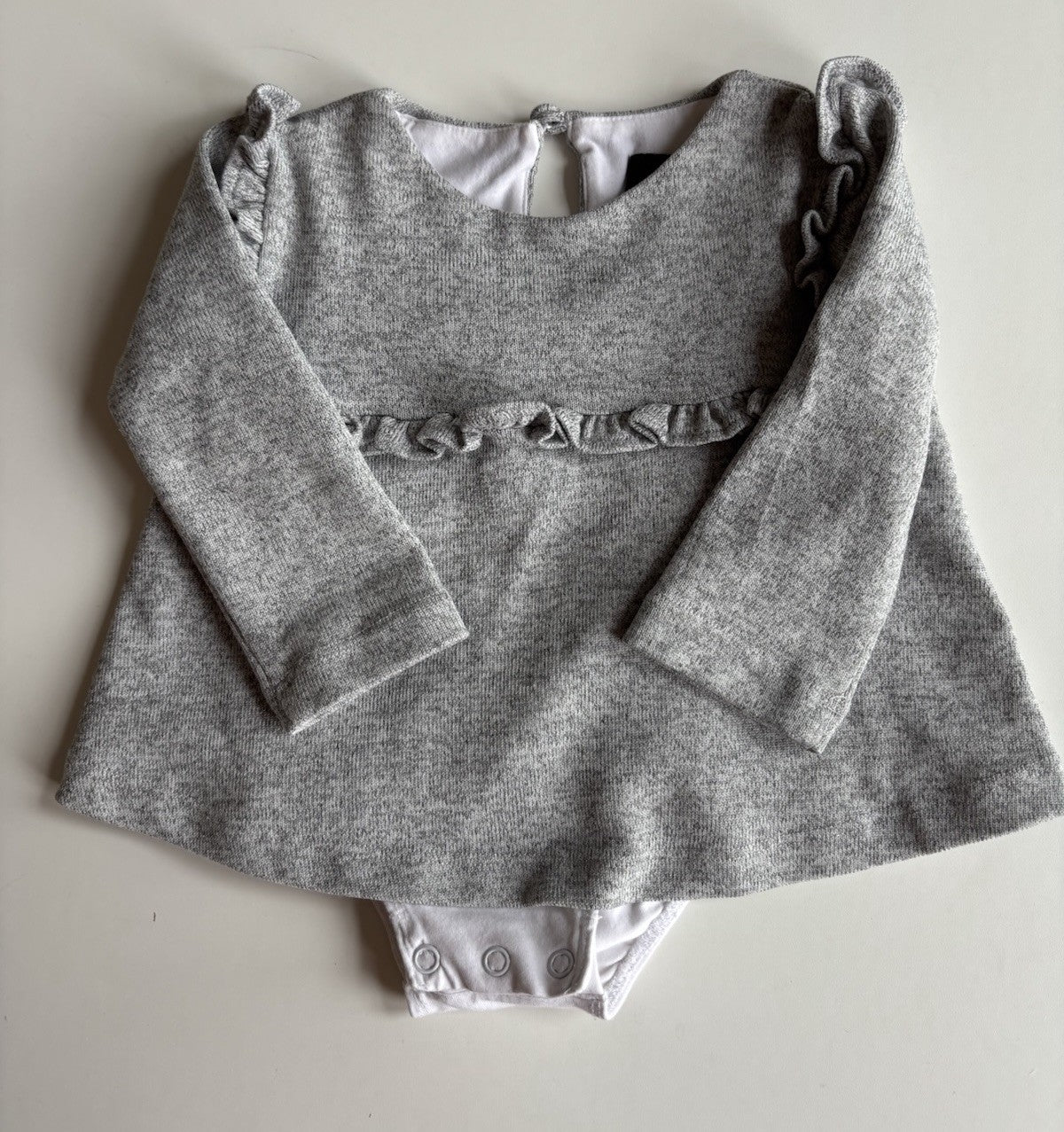 Bardot Junior baby girl size 3-6 months grey bodysuit frills top, VGUC