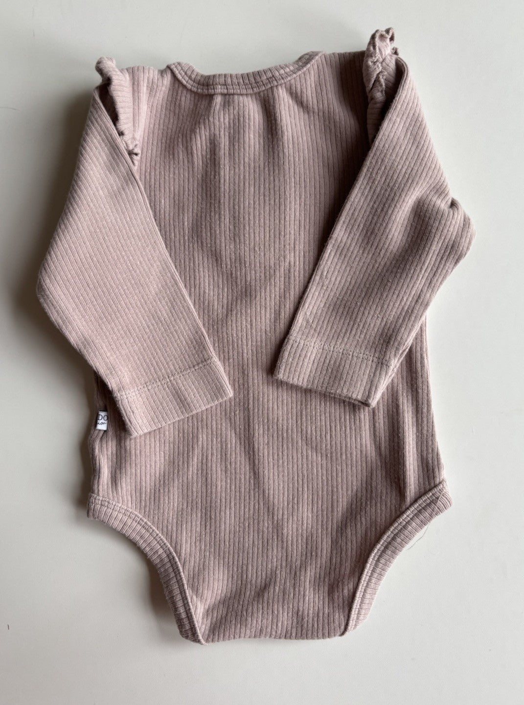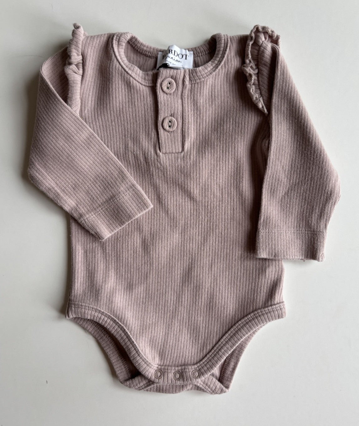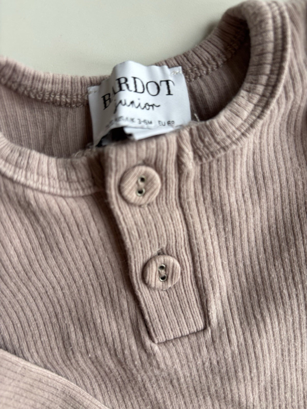 Bardot Junior baby girl size 3-6 months pink ribbed bodysuit, VGUC