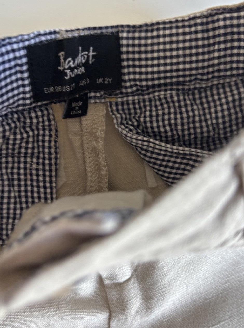 Bardot Junior kids boys size 3 beige linen blend pants, VGUC