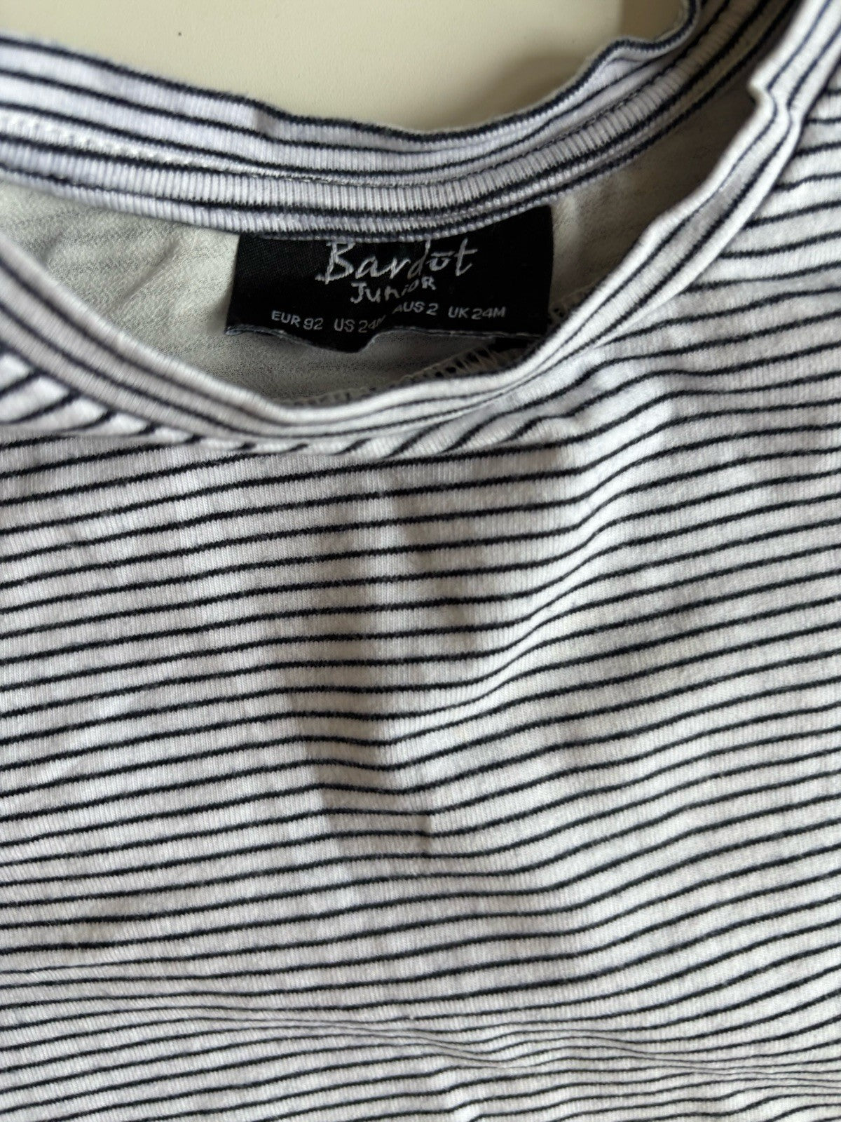 Bardot Junior kids girls size 2 black white stripe t-shirt, VGUC