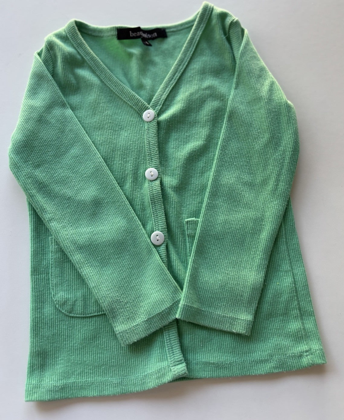 Beau Hudson baby size 12-18 months green ribbed button up cardigan, VG