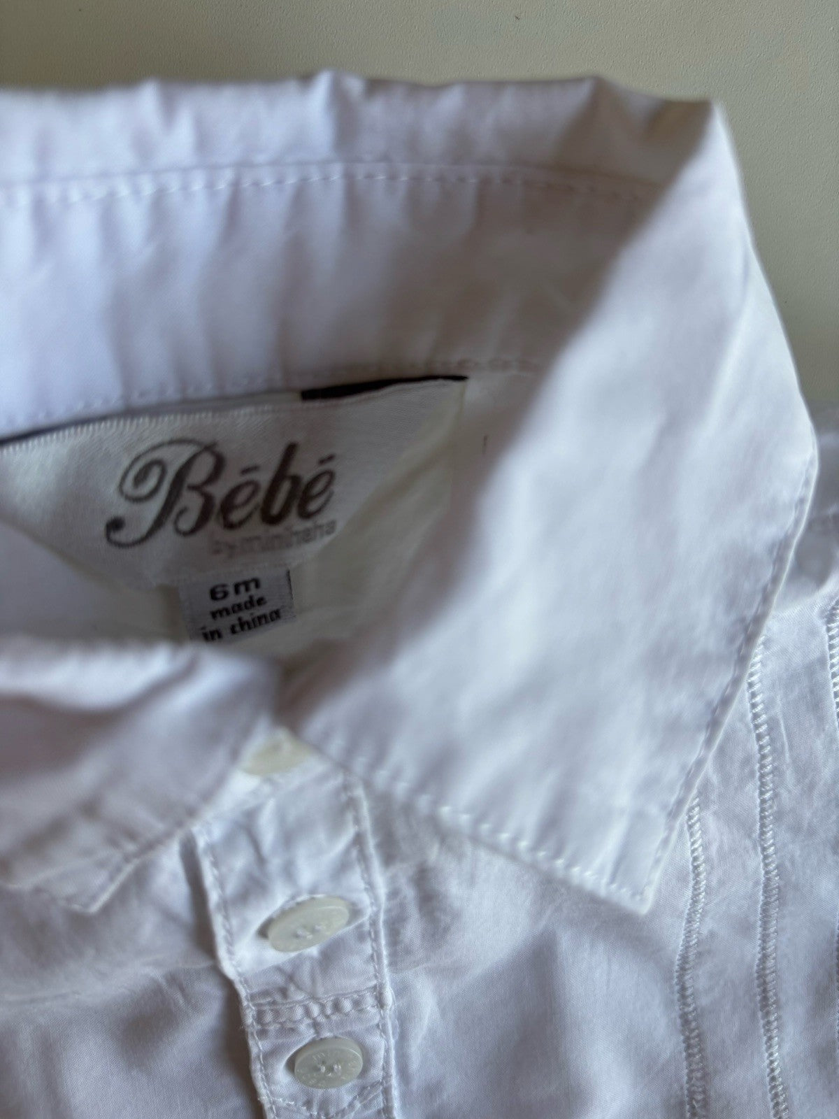 Bebe by Minihaha baby boy size 3-6 months white collared romper, VGUC