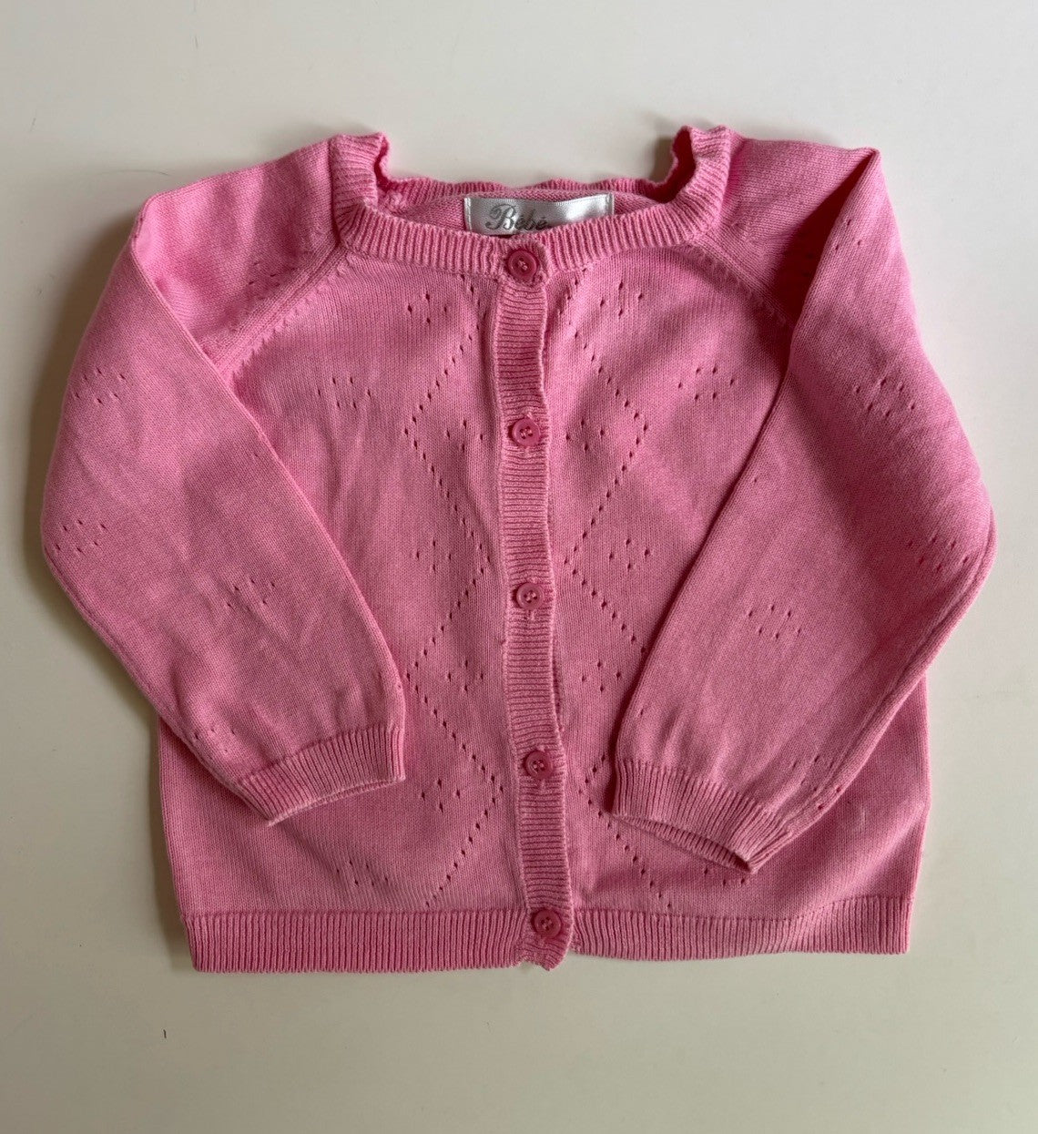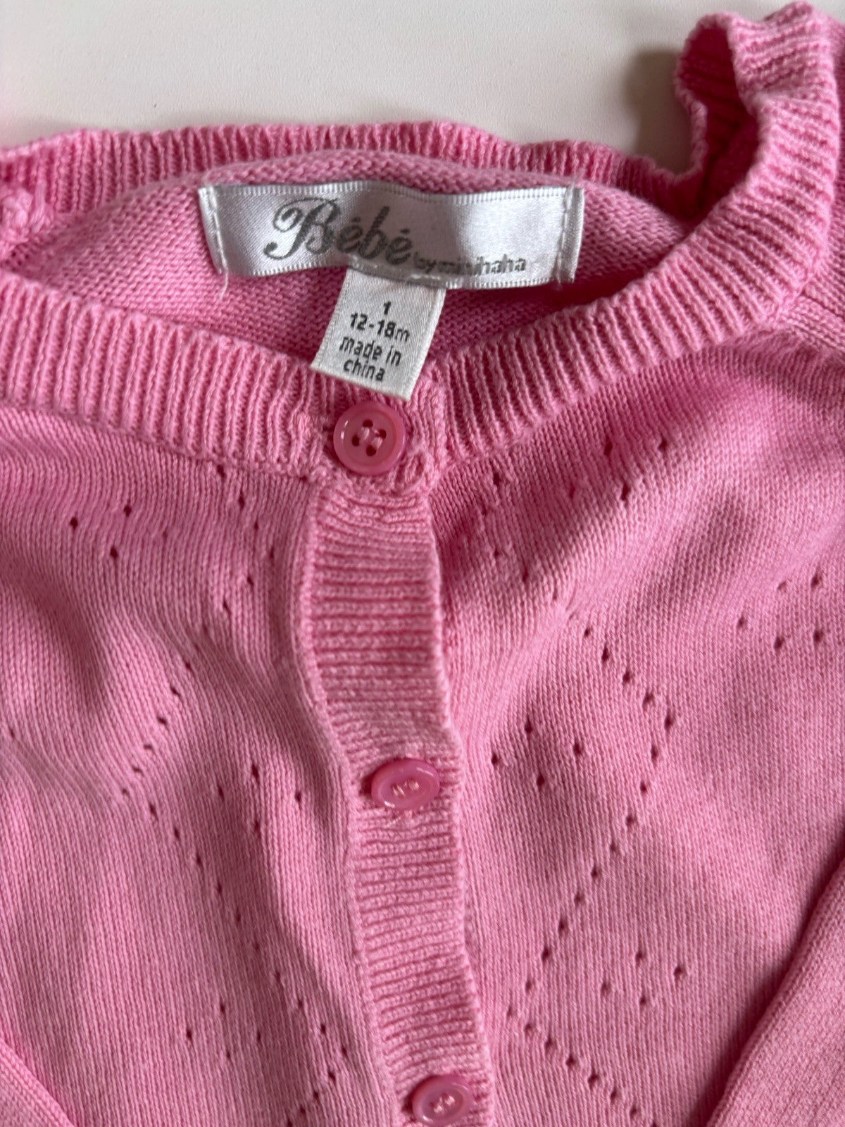 Bebe by Minihaha baby girl size 12-18 months pink knit cardigan jumper, VGUC