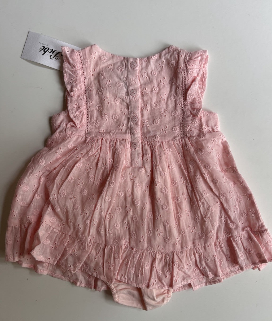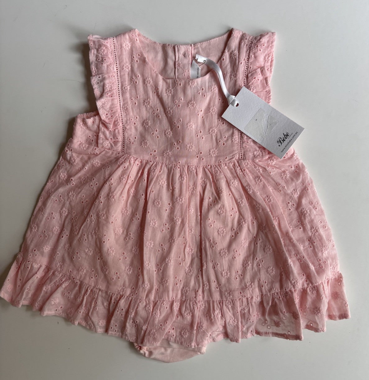 Bebe by Minihaha baby girl size 12-18 months pink lace bodysuit dress, BNWT