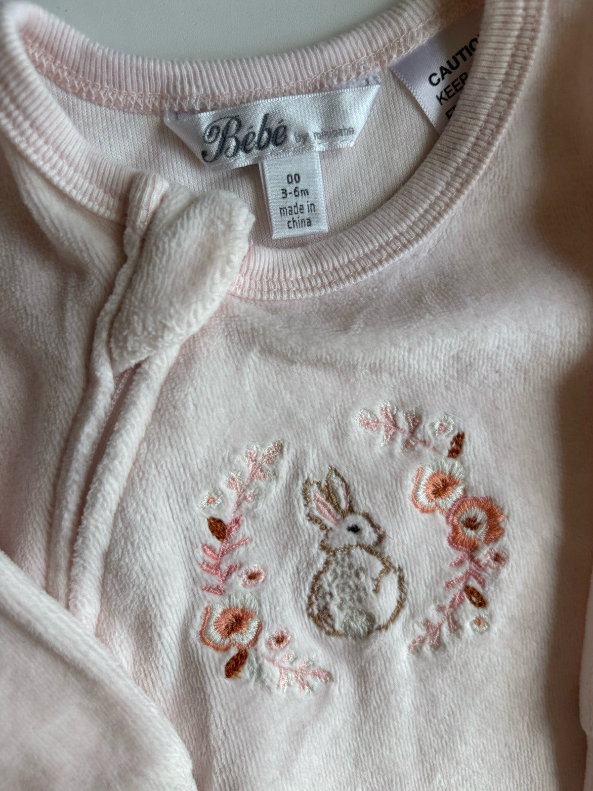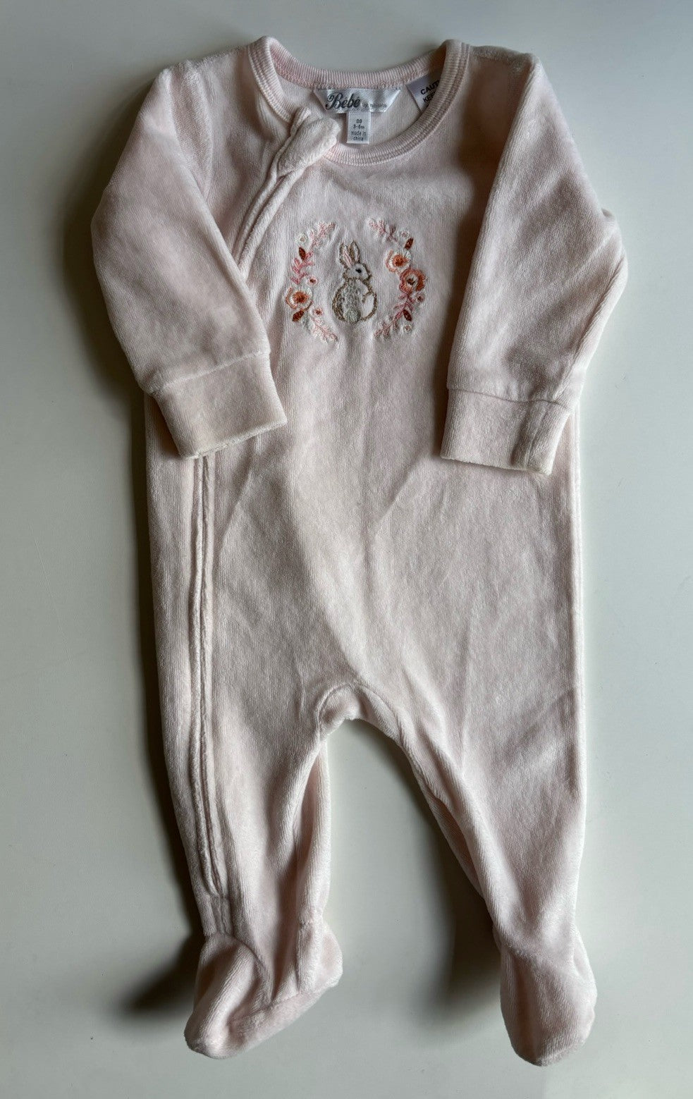Bebe by Minihaha baby girl size 3-6 months pink velour bunny one-piece
