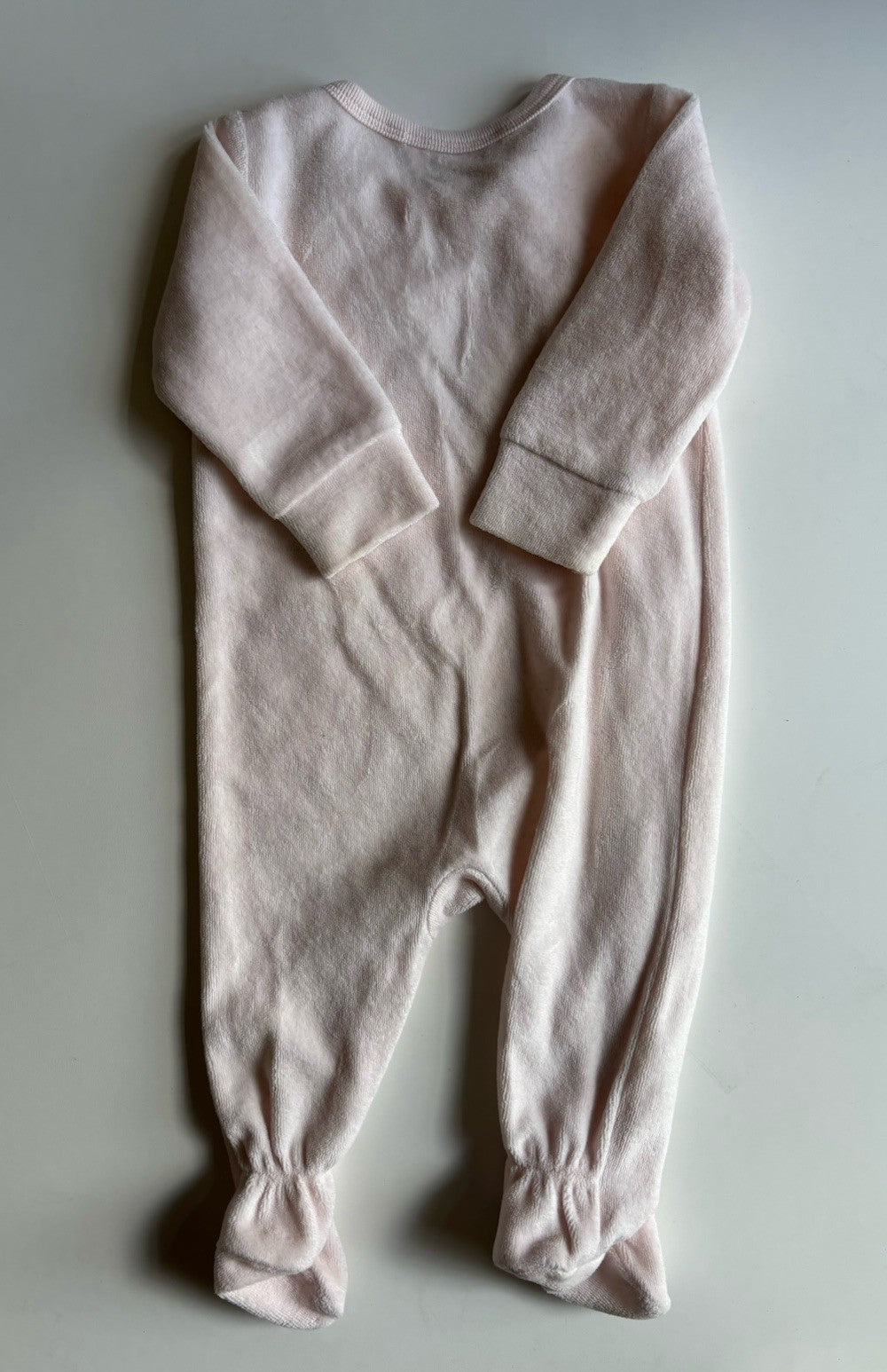 Bebe by Minihaha baby girl size 3-6 months pink velour bunny one-piece, VGUC