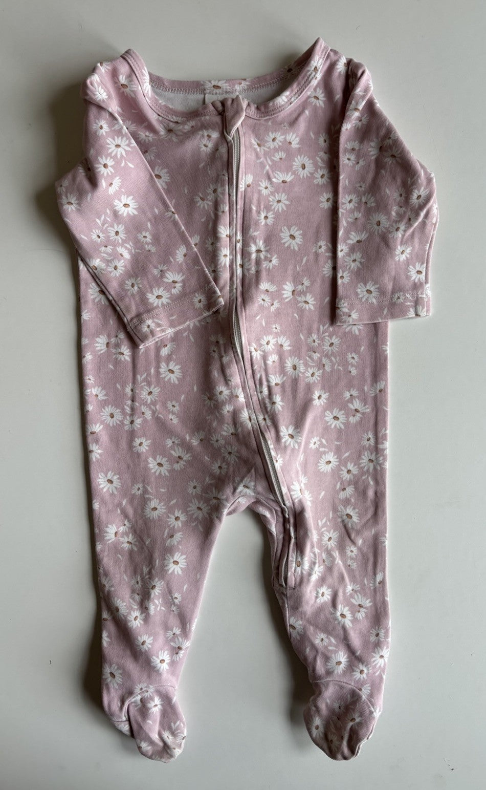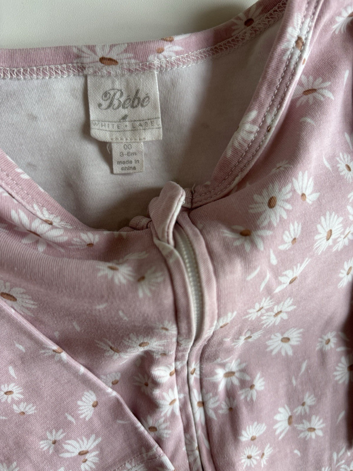 Bebe by Minihaha baby girl size 3-6 months pink white floral one-piece, VGUC