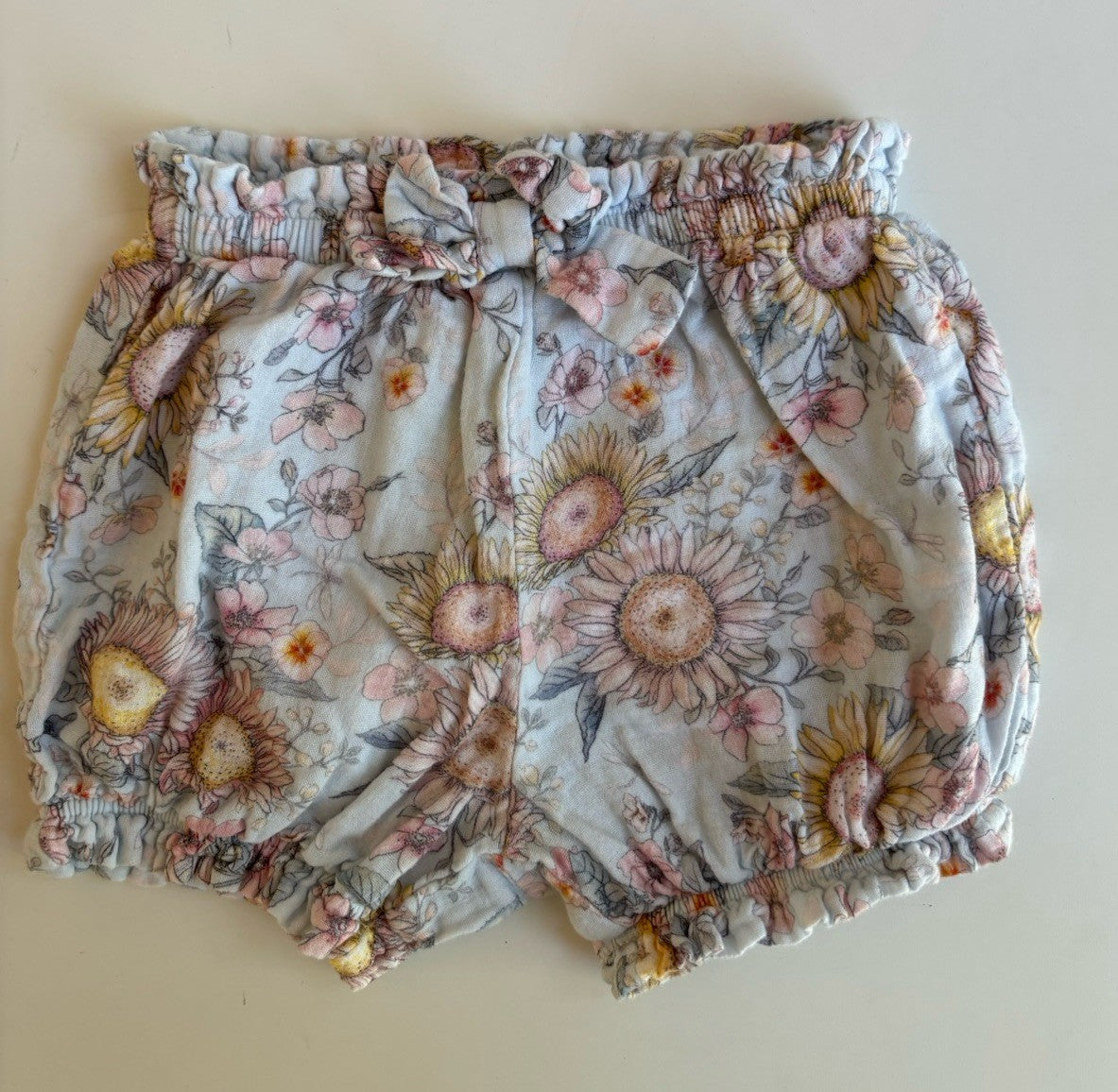 Bebe by Minihaha baby girl size 6-12 months blue pink floral shorts, VGUC
