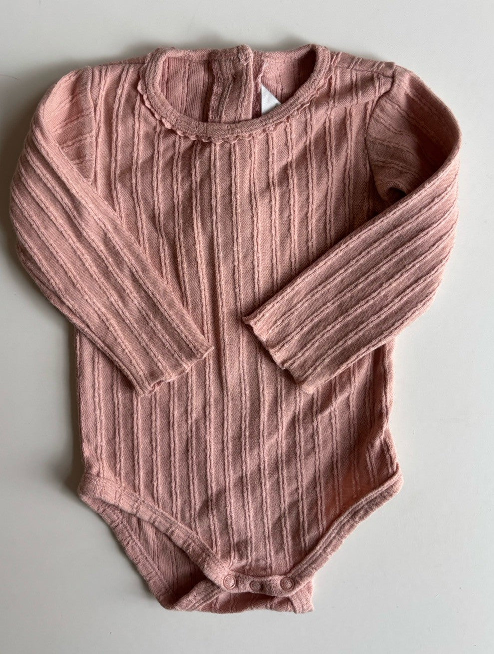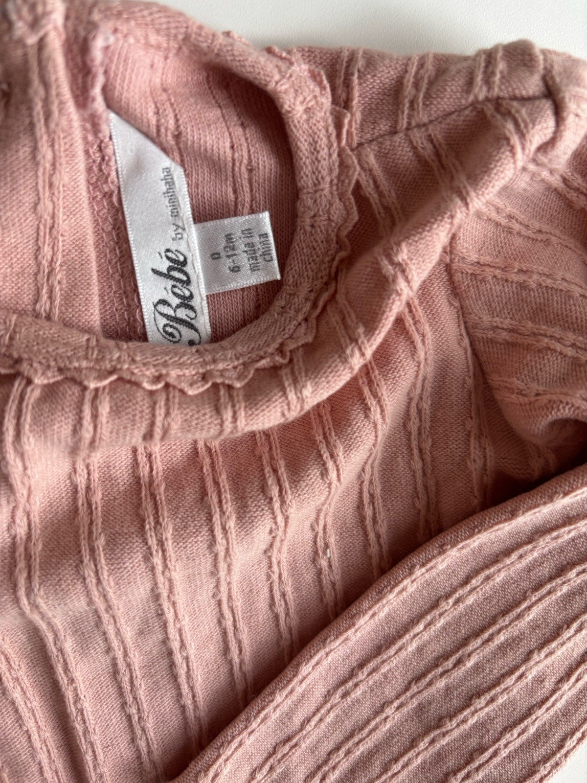 Bebe by Minihaha baby girl size 6-12 months pink ribbed knit bodysuit,