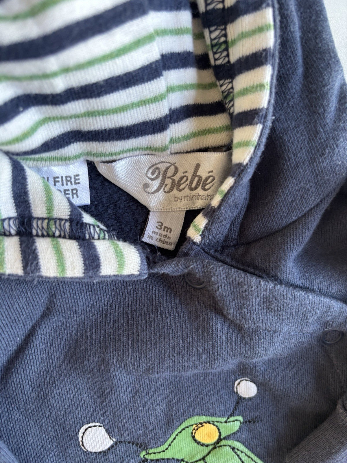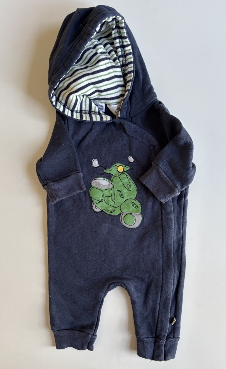 Bebe by Minihaha baby size 0-3 months navy blue hooded one-piece scooter, VGUC