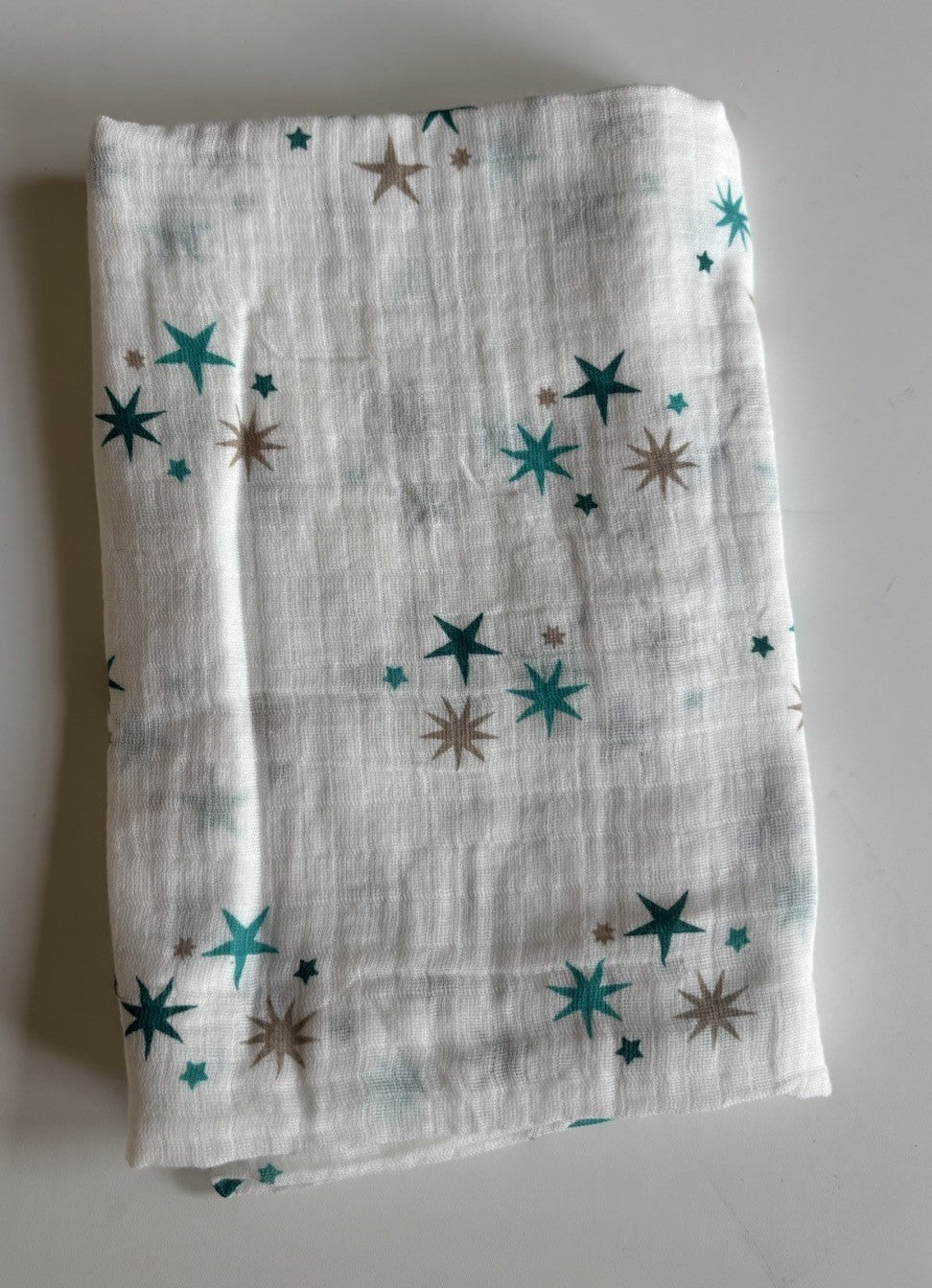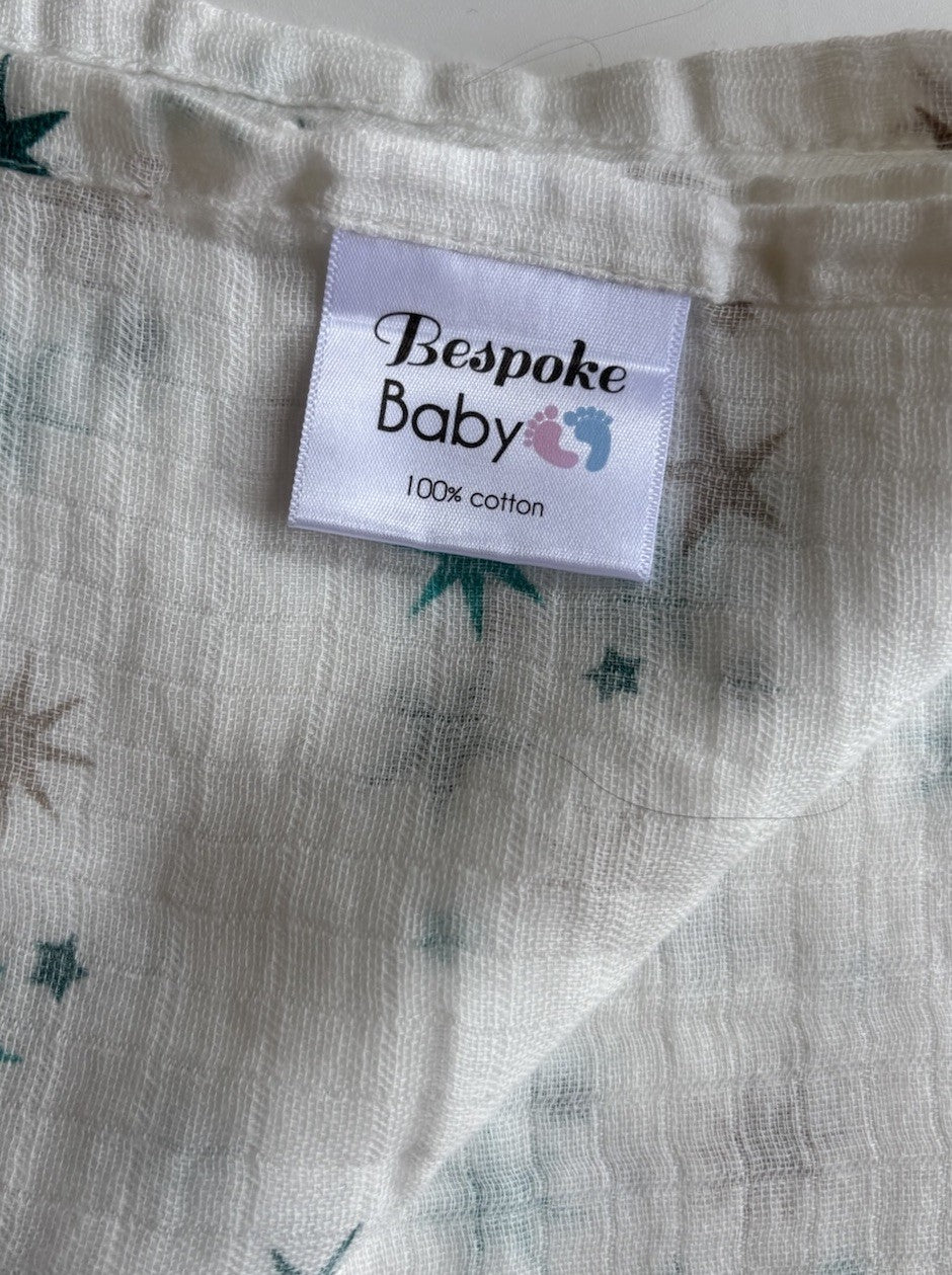 Bespoke baby white green stars cotton swaddling blanket wrap, VGUC